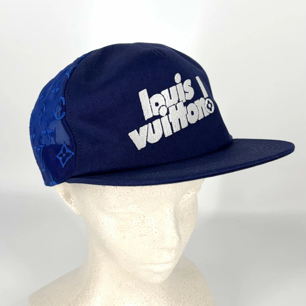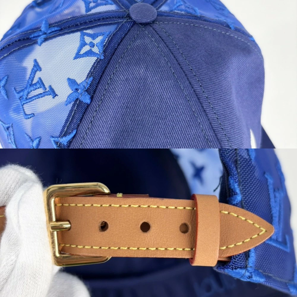 Pre-owned Louis Vuitton Men's Everyday LV Mesh Baseball Cap, Size 58, Monogram, Cotton, Nylon, Blue, Gold Hardware. MP3125.