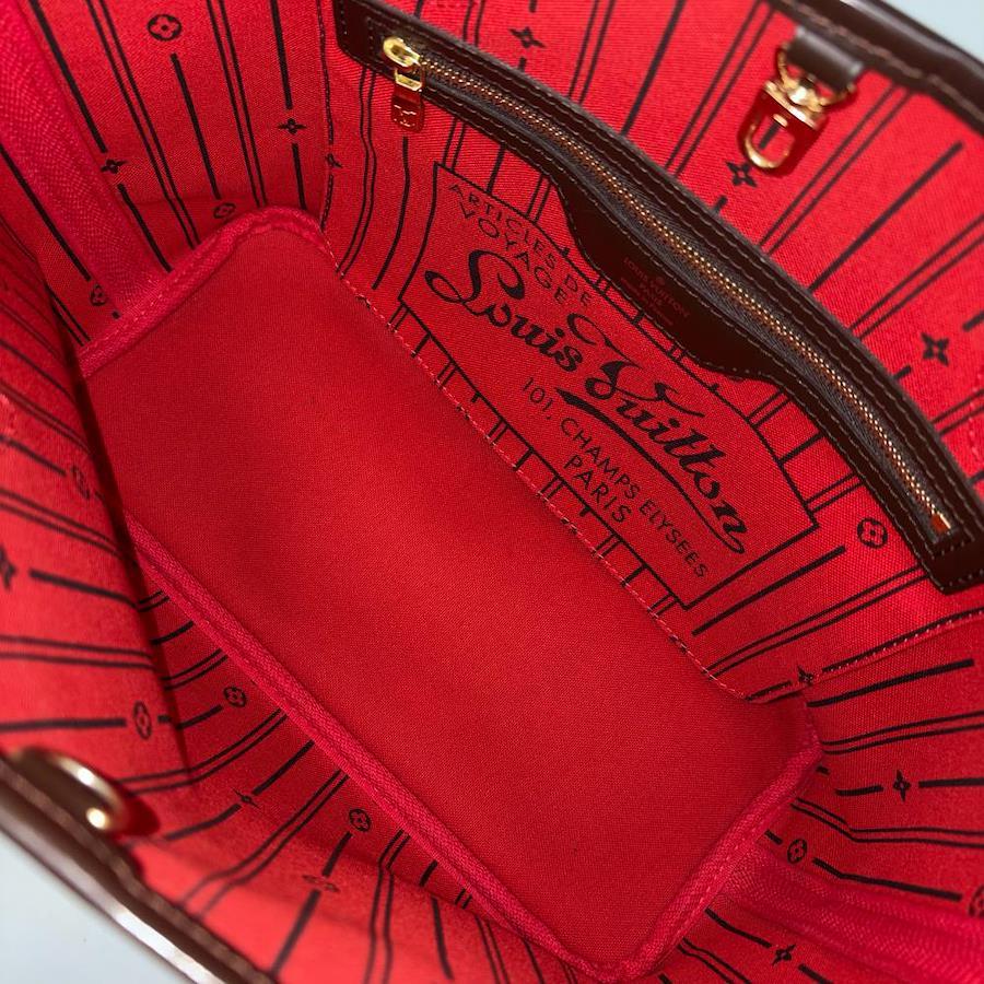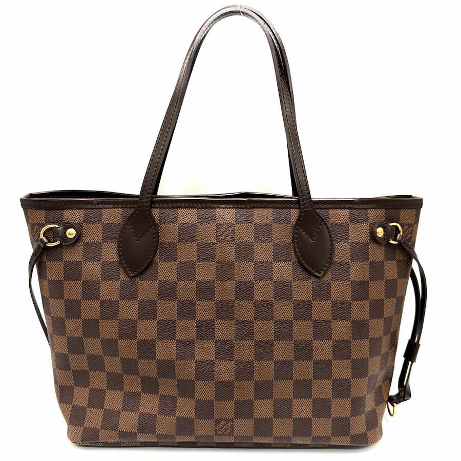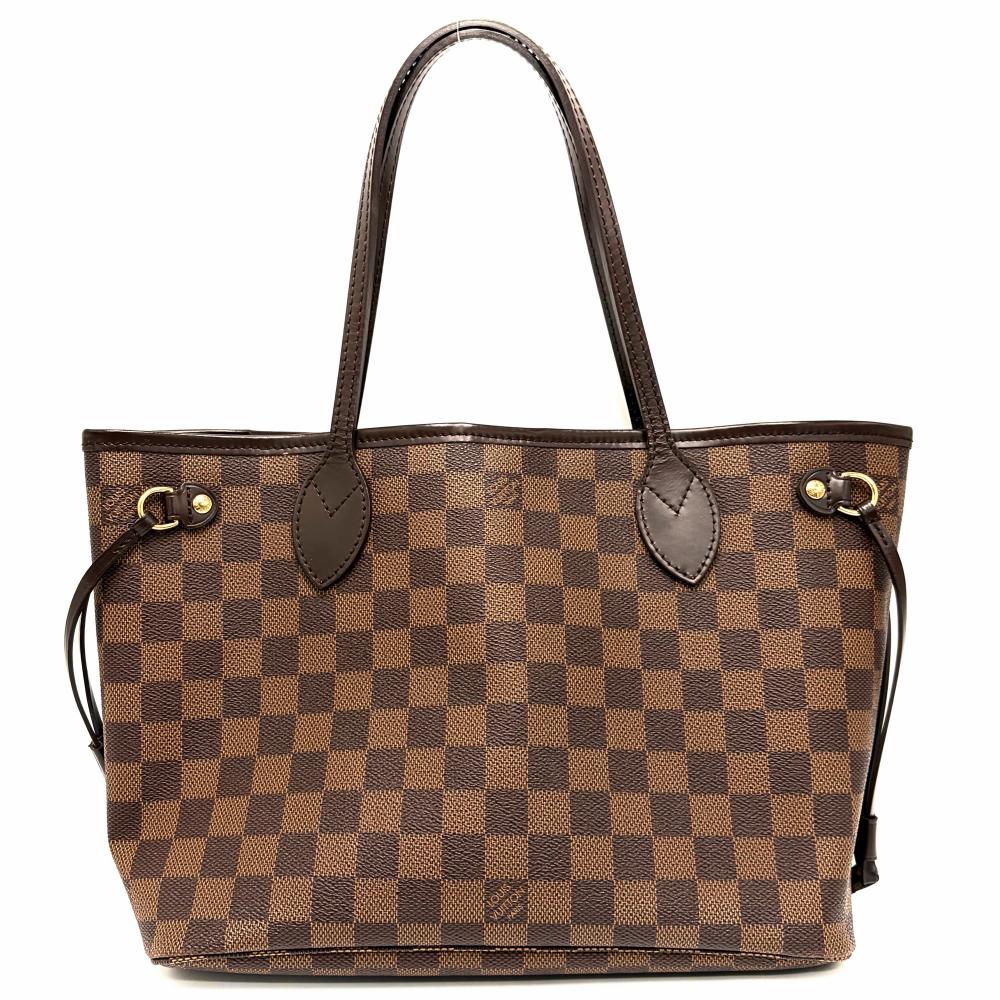 Pre-owned Louis Vuitton Women's Damier Neverfull PM Tote Bag, perfect for commuting to work or school. Brown with gold hardware. Model N51109.