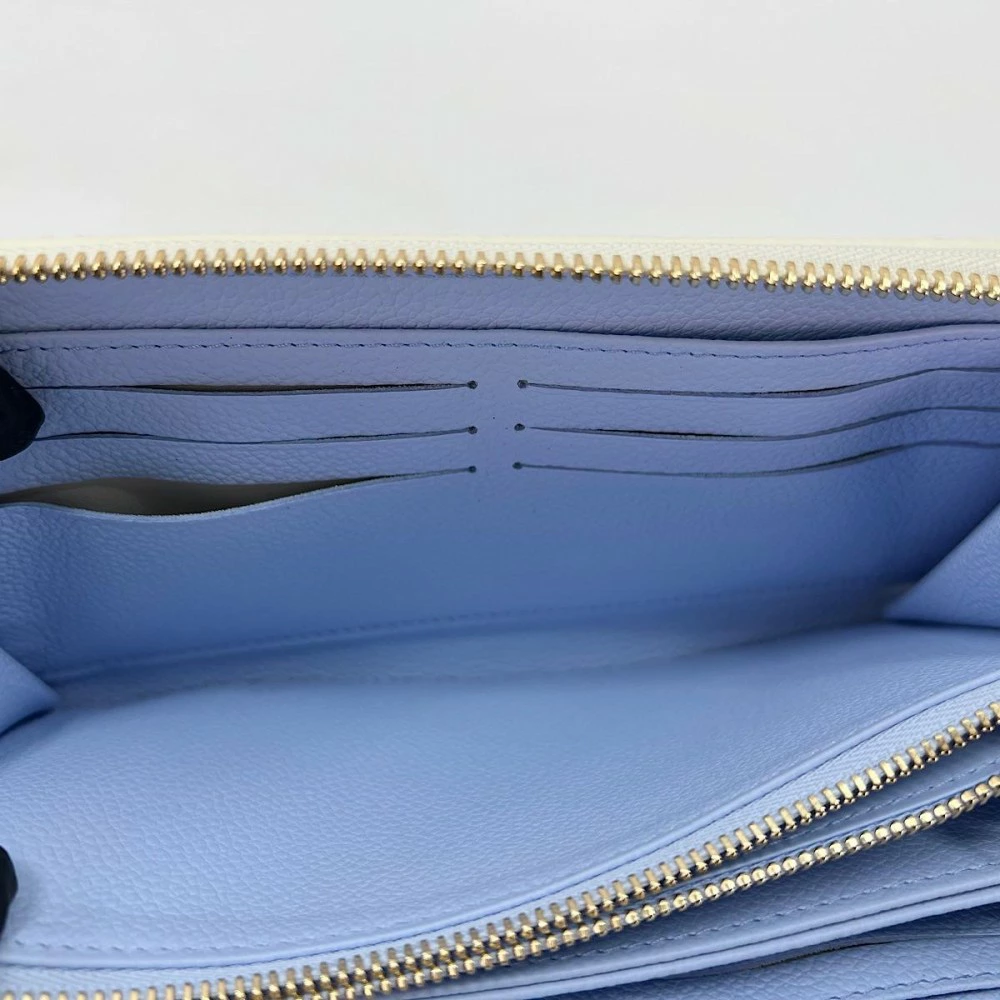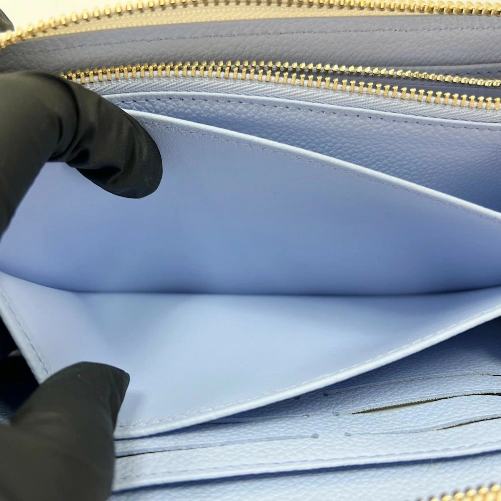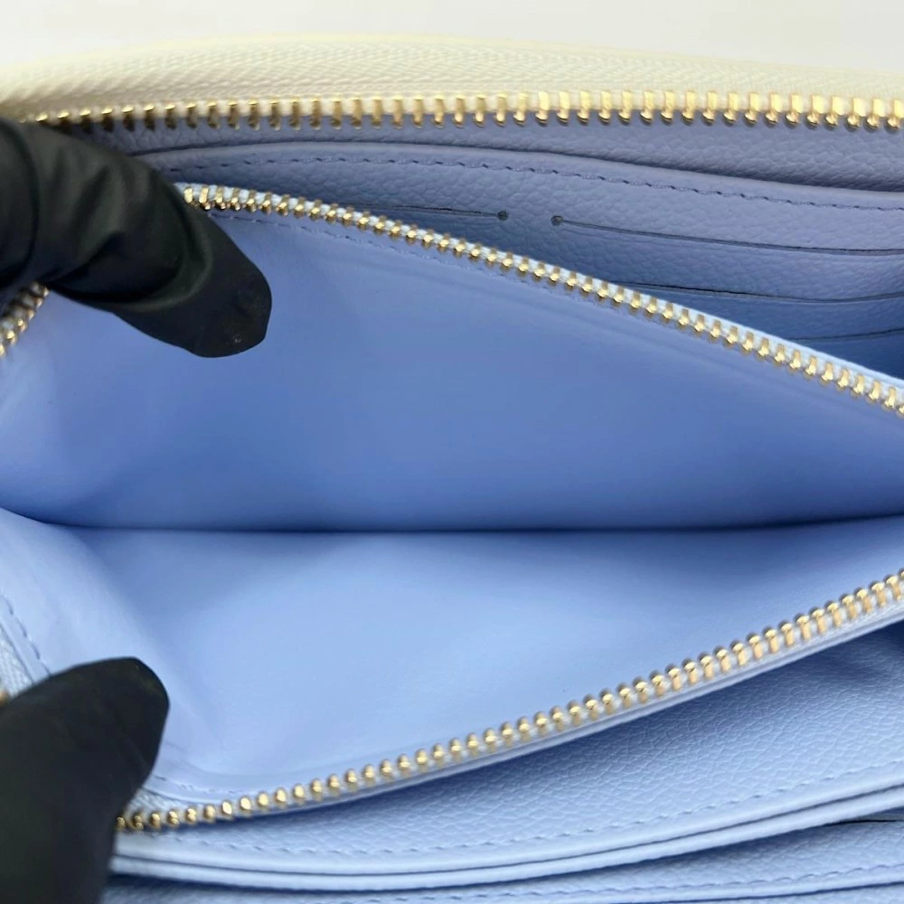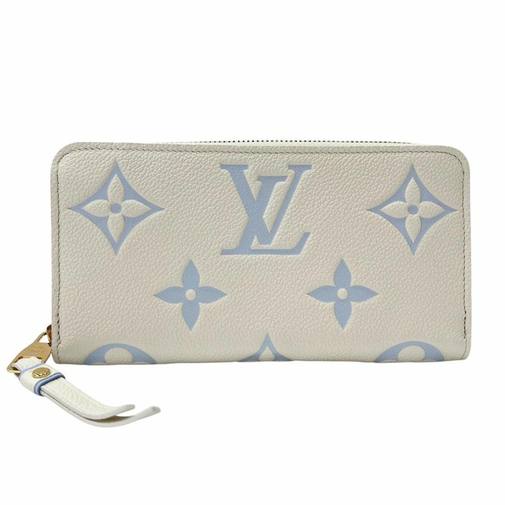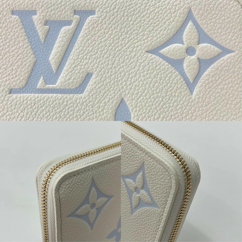 [23% OFF] Louis Vuitton Women's Zippy Wallet, Long Wallet with Round Zipper, M83308, Monogram Empreinte, Latte White, Candy Blue, Gold Hardware, Excellent Condition [Pre-owned]