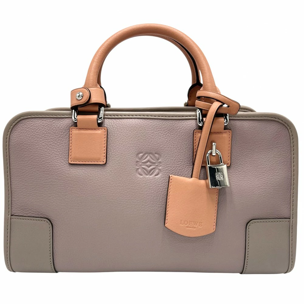 Pre-owned Loewe Amazona 28 Anagram Mini Boston Bag (352.69LA03) in beige and multicolored leather with silver hardware. Excellent condition.