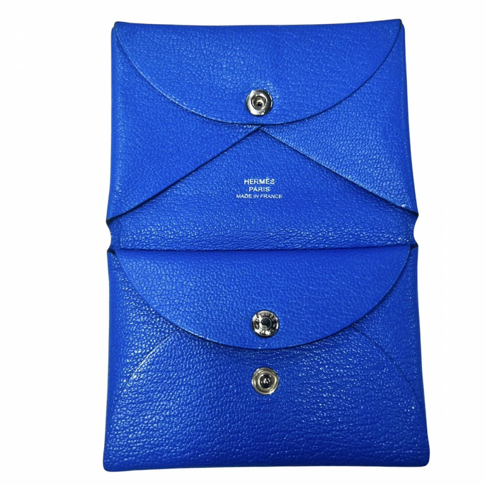 Hermès Calvi Duo Coin Case, Unisex, Coin Purse, Card Case, Small Item, Men's/Women's, HERMES B Chevre Blue, Silver Hardware, 2023 [Pre-owned]