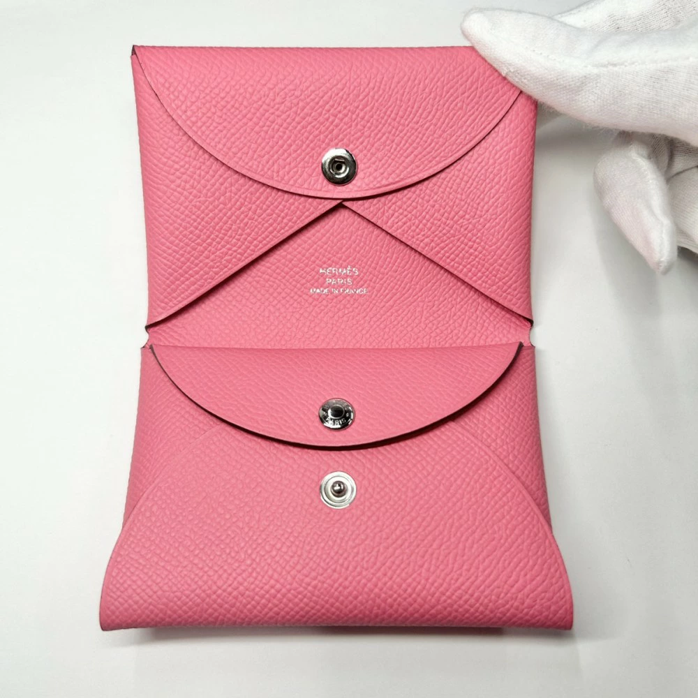 Hermès Calvi Duo Coin Case, Unisex, Coin Purse, Card Case, Small Item, Men's/Women's, HERMES B Stamp, Epsom Leather, Pink, Silver Hardware, Excellent Condition, 2023 [Pre-owned]