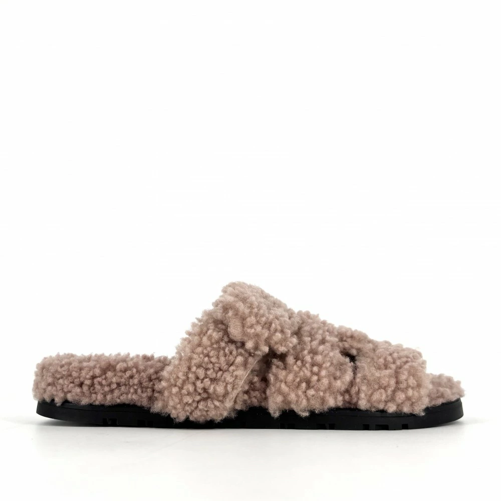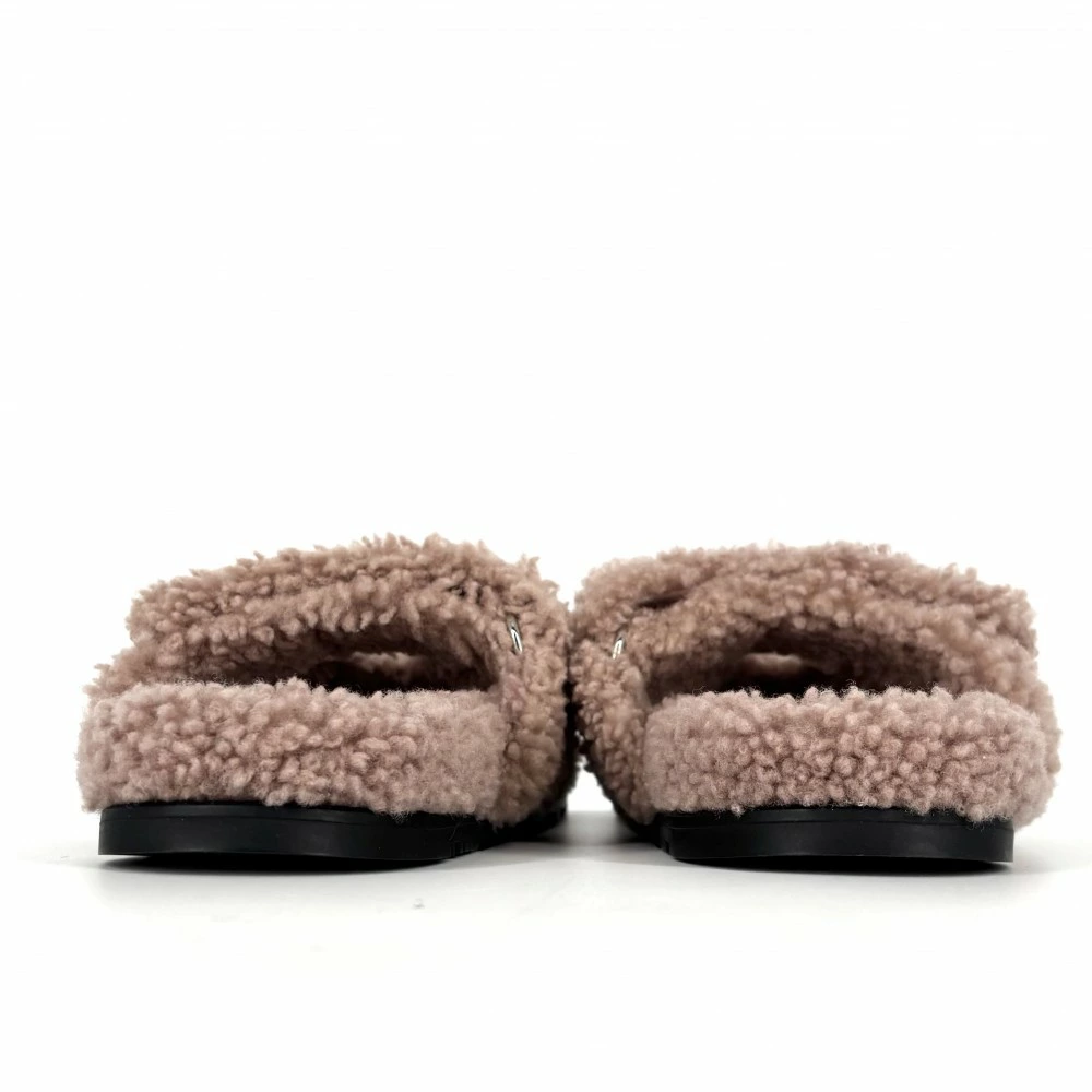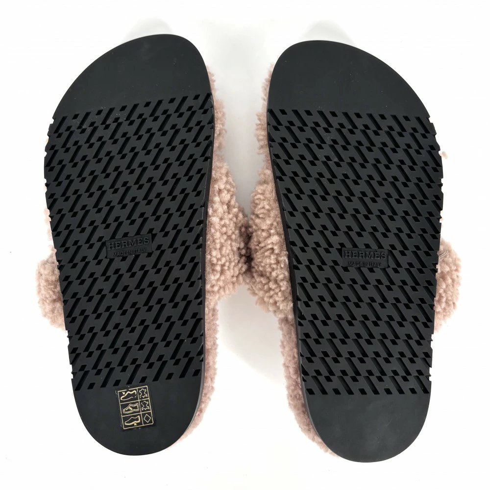 Pre-owned Hermès Women's Chypre Flat Sandals with Boa and Belt. Made of Shearling Leather and Pink with Silver Hardware. Spring/Summer. Excellent Condition.
