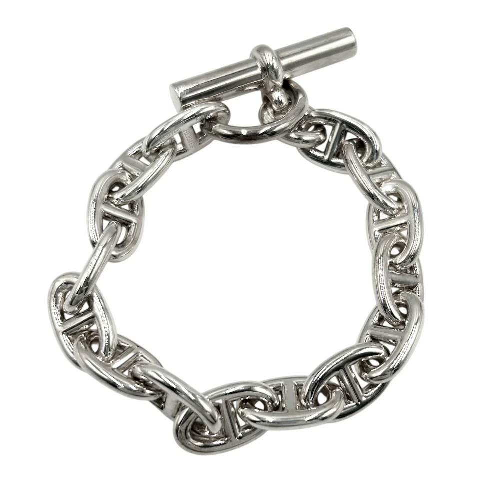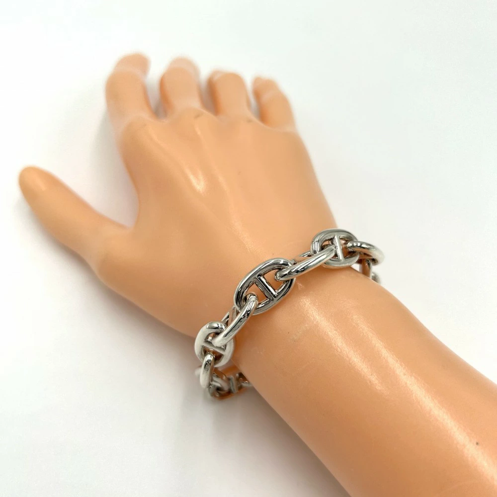 Pre-owned Hermès Chaine d'Ancre MM Bracelet for Men, 15 Links, Silver, 925 Sterling Silver, Approximately 56.0g