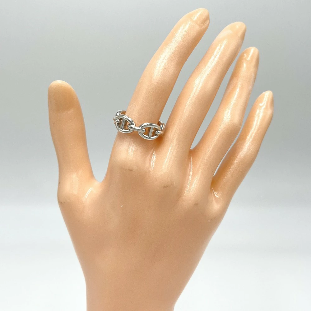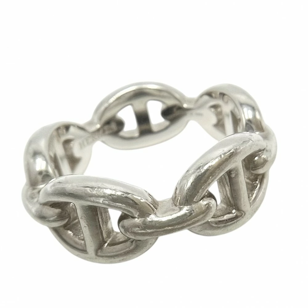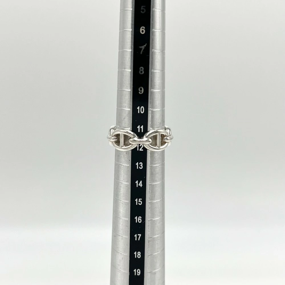 Pre-owned Hermès Chaine d'Ancre Enchaine ring for women, size 52, sterling silver (925), approximately size 11.5, weighing approximately 5.6g.