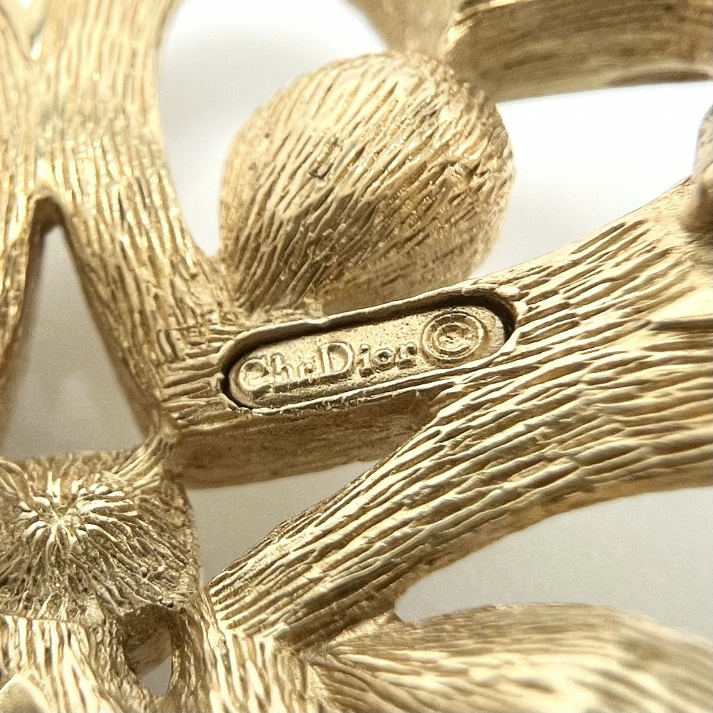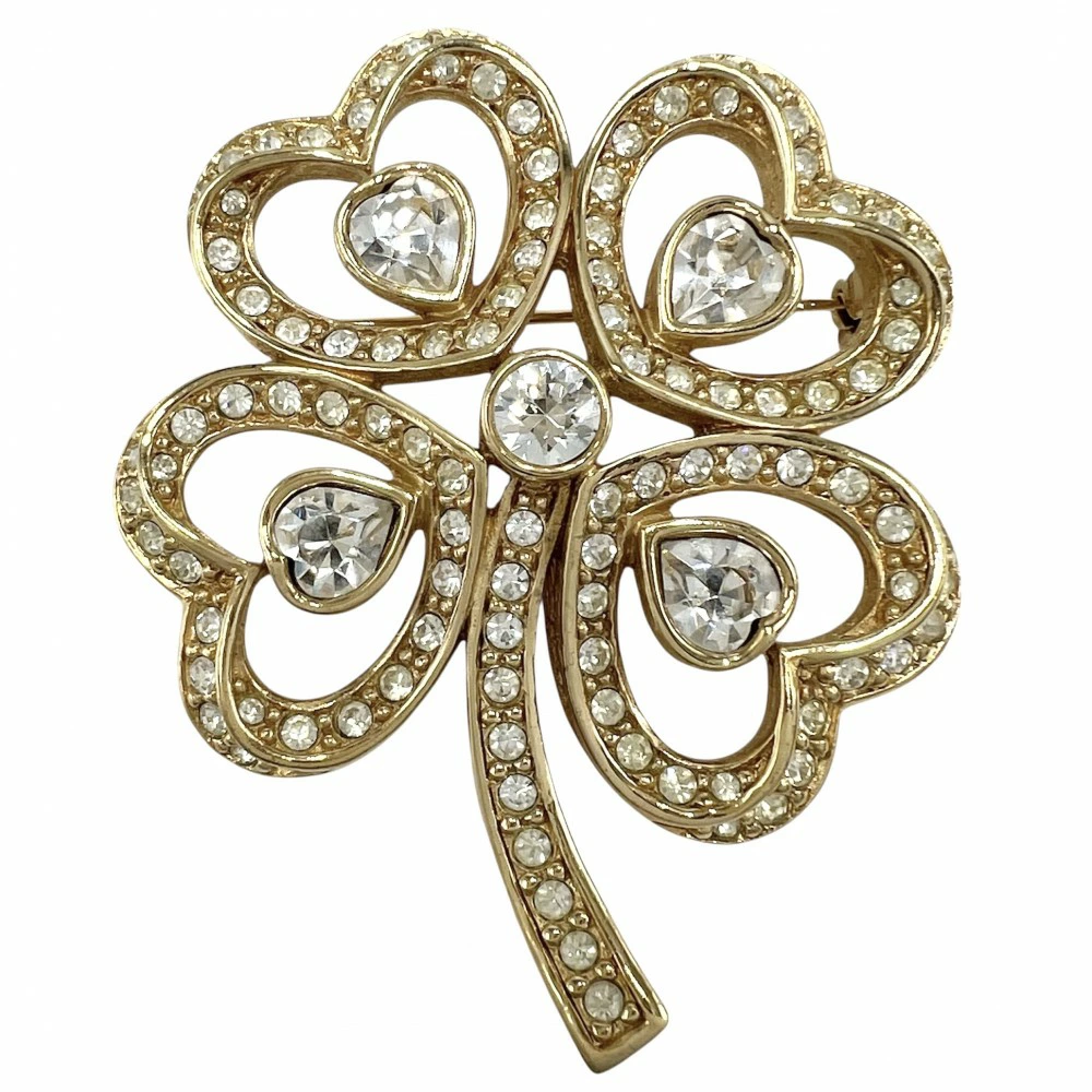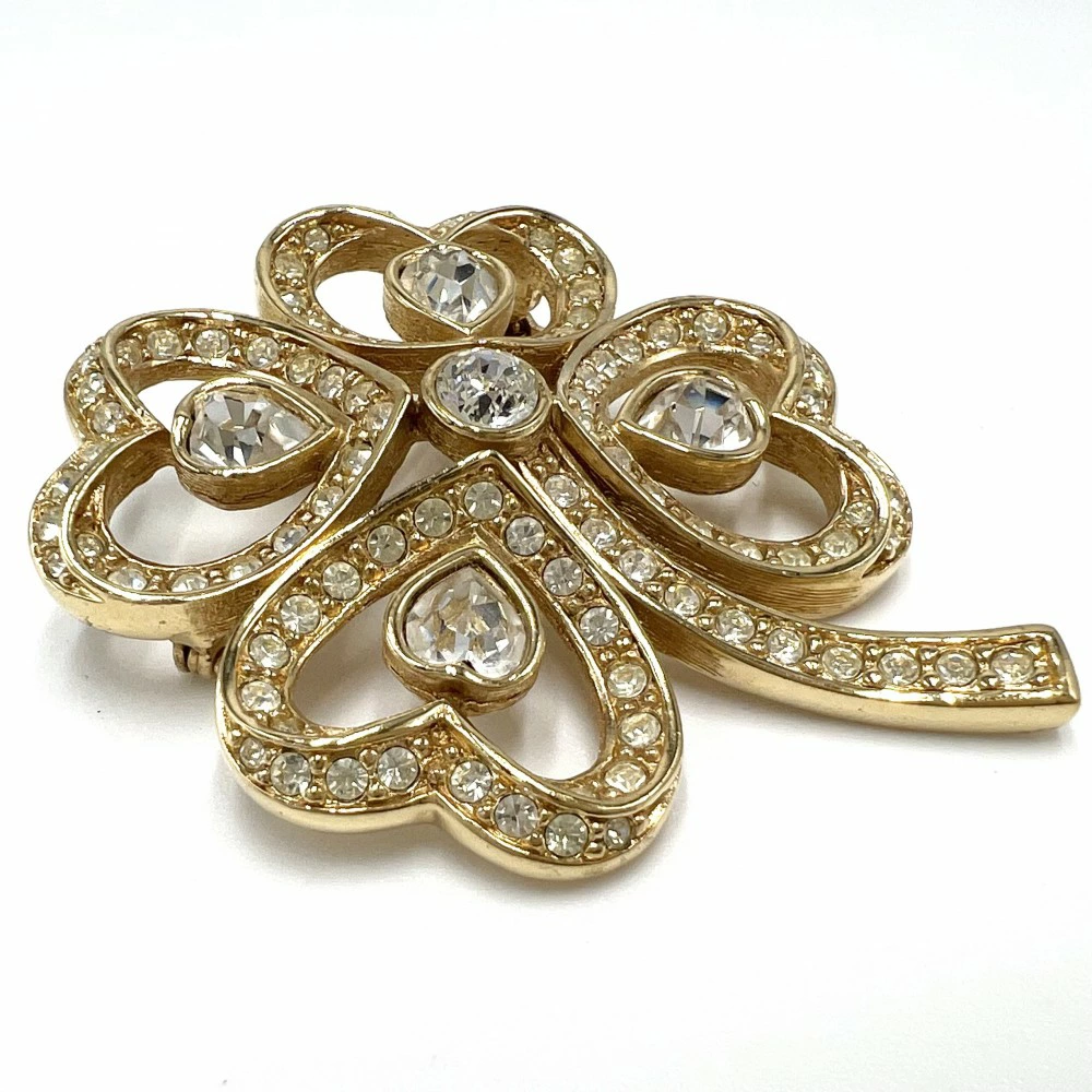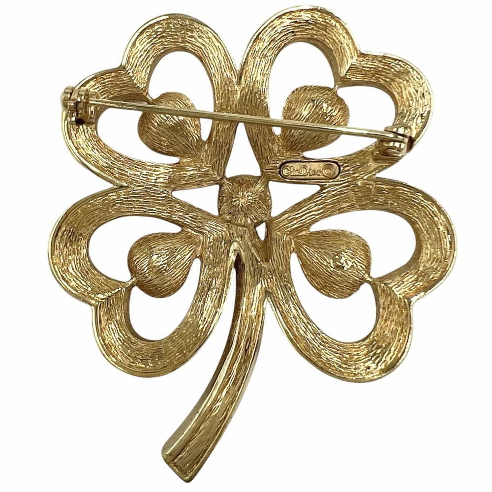 Pre-owned Christian Dior women's clover brooch with gold rhinestones, approximately 44.9g, in excellent condition.