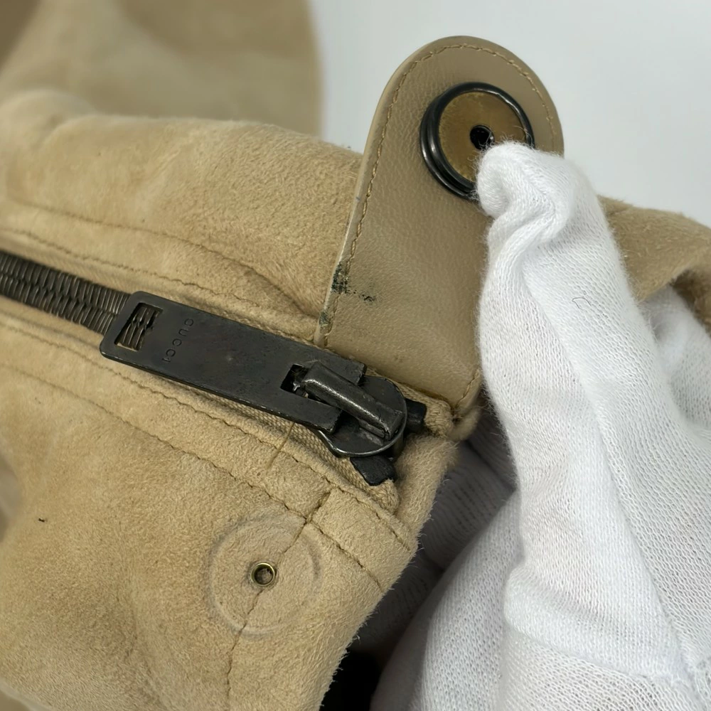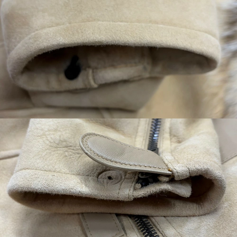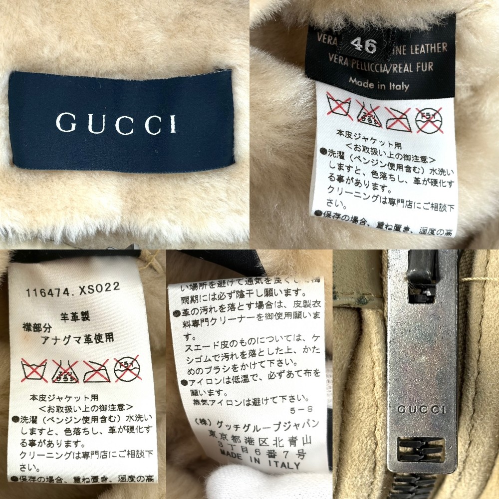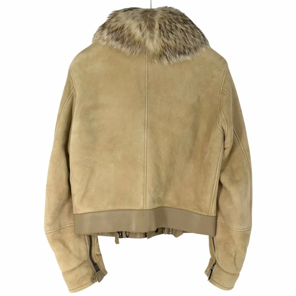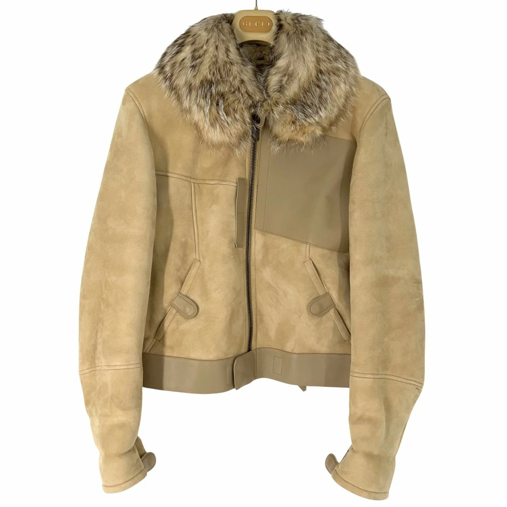 Pre-owned Gucci Women's Shearling Coat, Size 36 (116474), Beige, Gunmetal Hardware, Badger Leather, Winter.