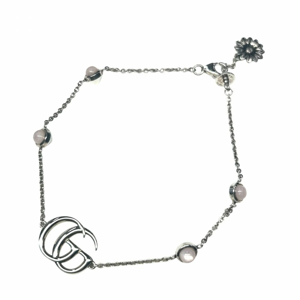 Pre-owned Gucci Bracelet for Women, Double G Mother-of-Pearl, Silver 925, Jewelry, Accessory, Key, GG GUCCI, Silver 925, 527393, Silver, Pink, Approx. 6.5g