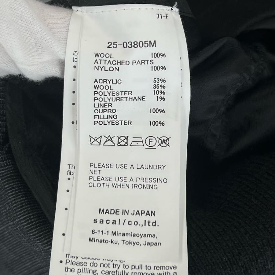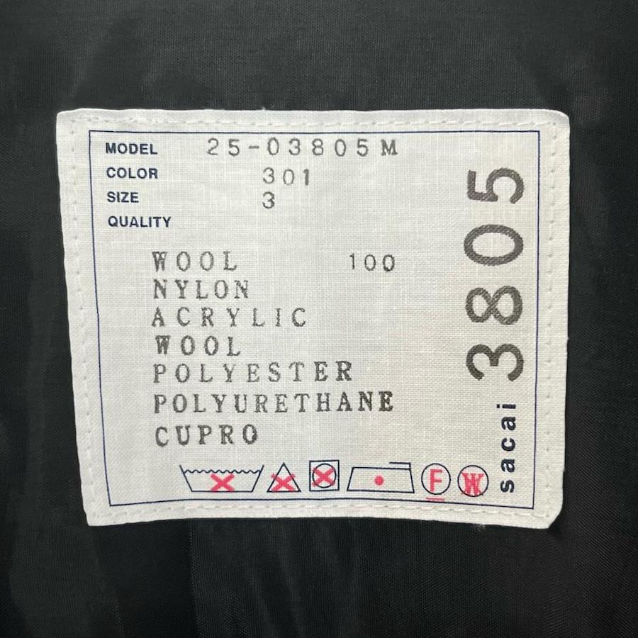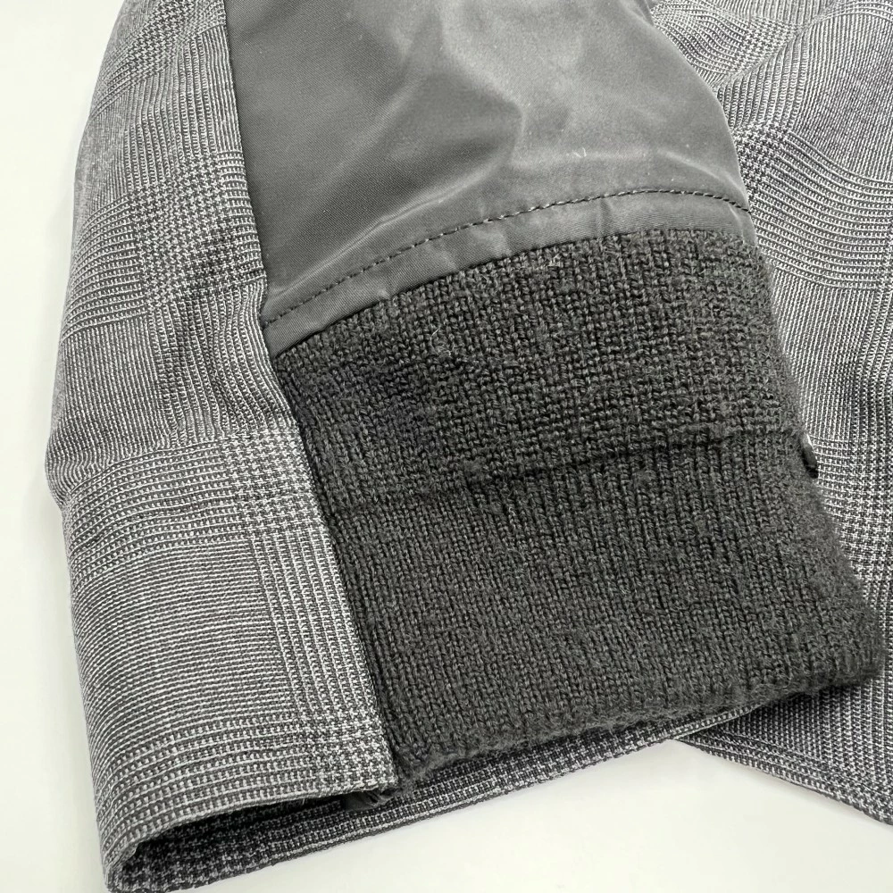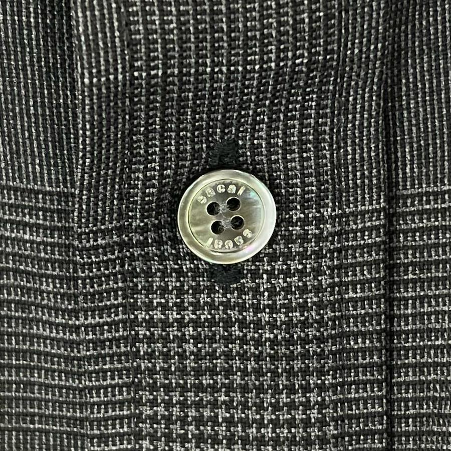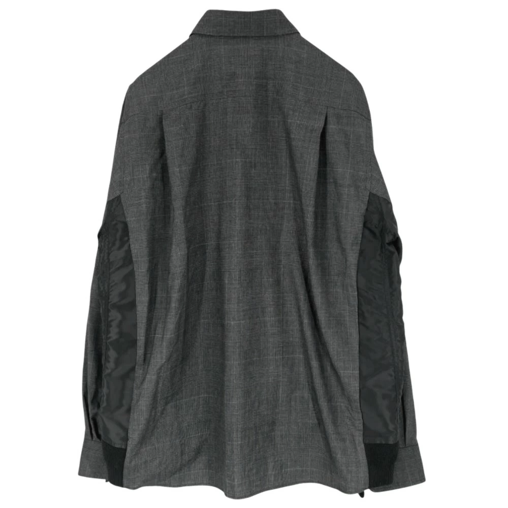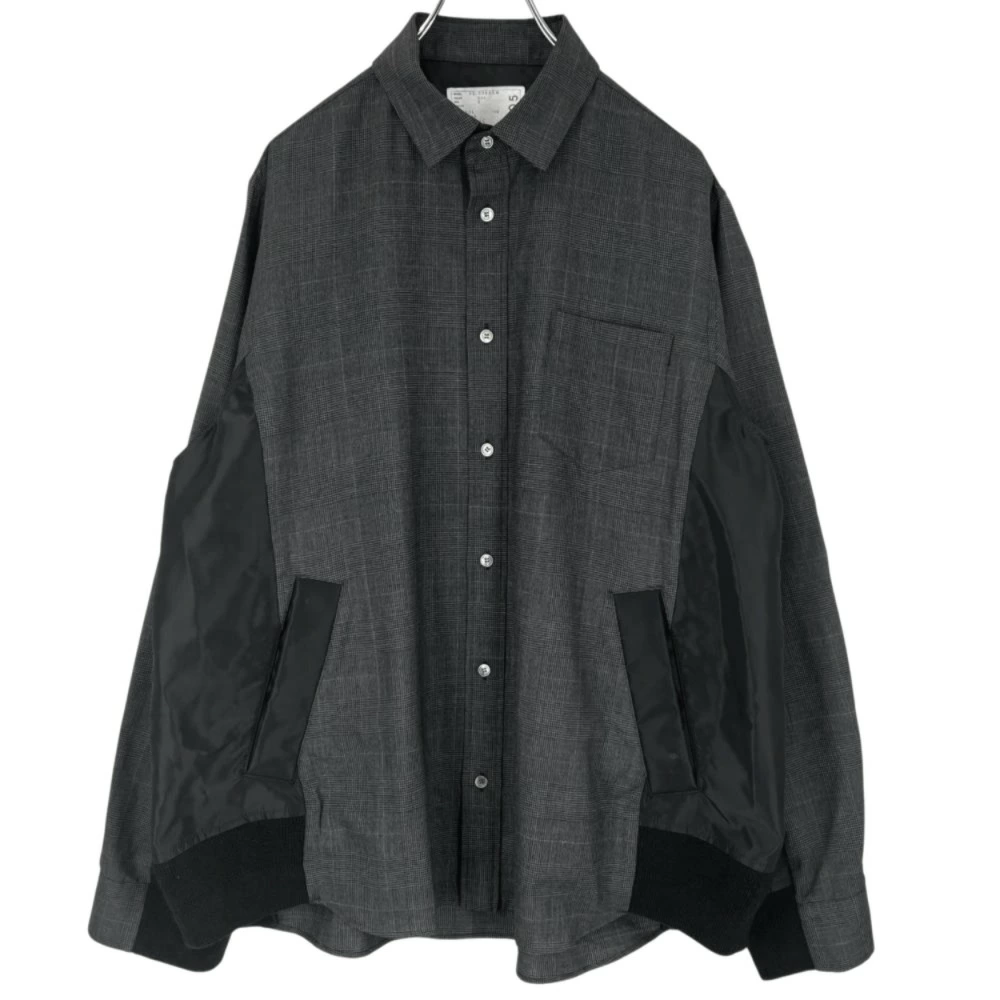 Sacai Men's Long Sleeve Glen Plaid Shirt, Mixed-Material Shirt, Size 3, Black/Gray, Wool/Cupra, Fall/Winter [Pre-owned]