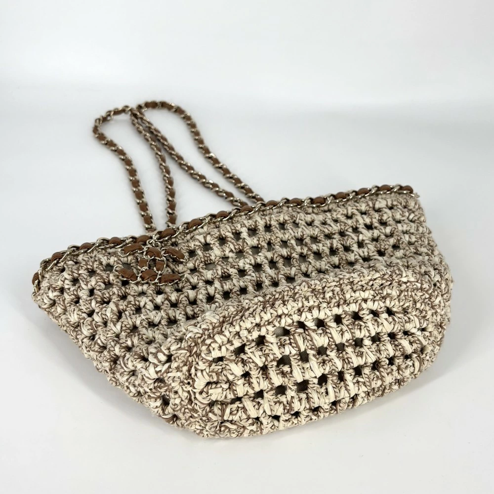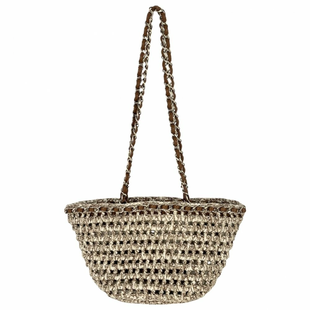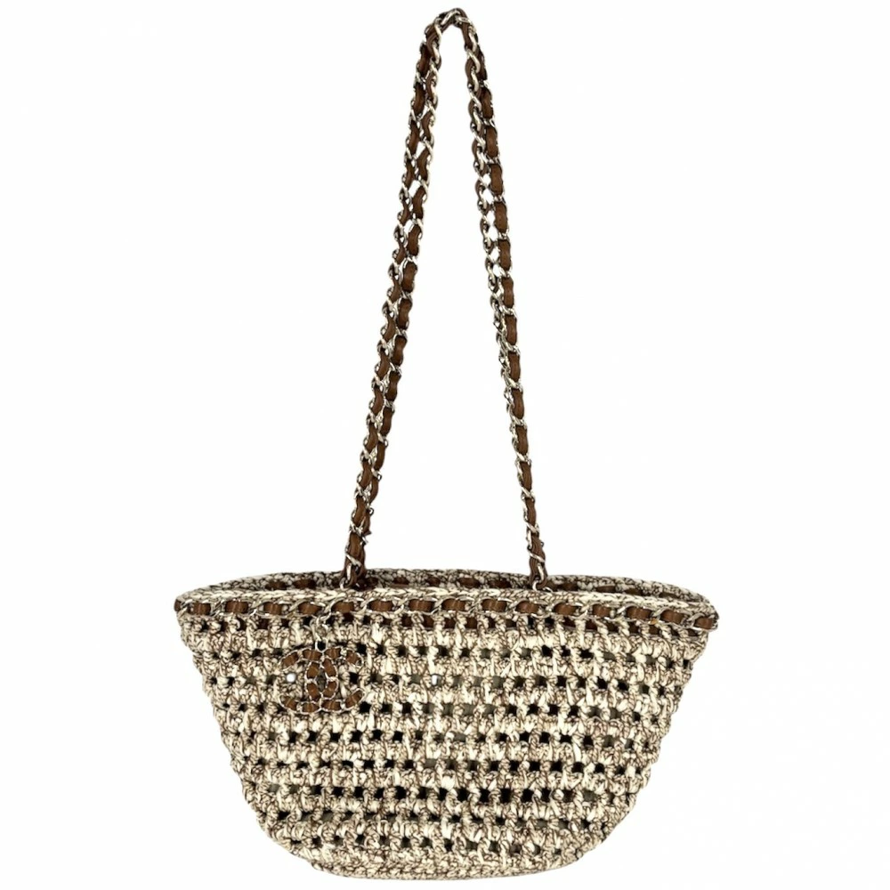 Pre-owned Chanel Women's Shoulder Bag, Basket Bag, Shopping Bag, Chain Tote Bag, Coco Mark, Beige, Brown, Gold Hardware