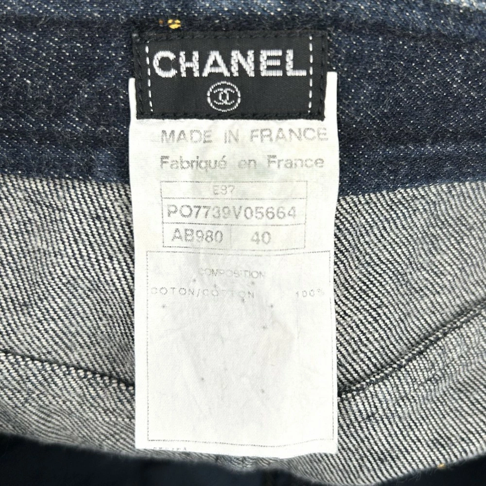 Pre-owned Chanel Women's Denim Mini Skirt with Coco Buttons, Vintage Coco Mark, Navy Blue, Silver Hardware, Cotton, All-Season. Size 40.