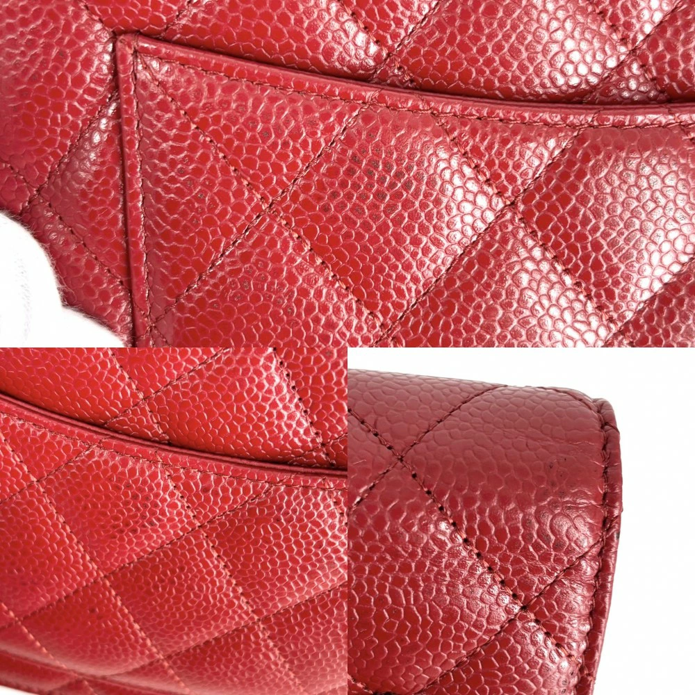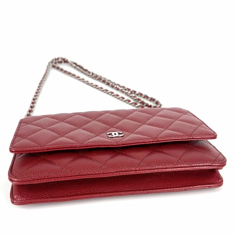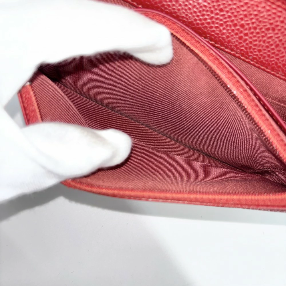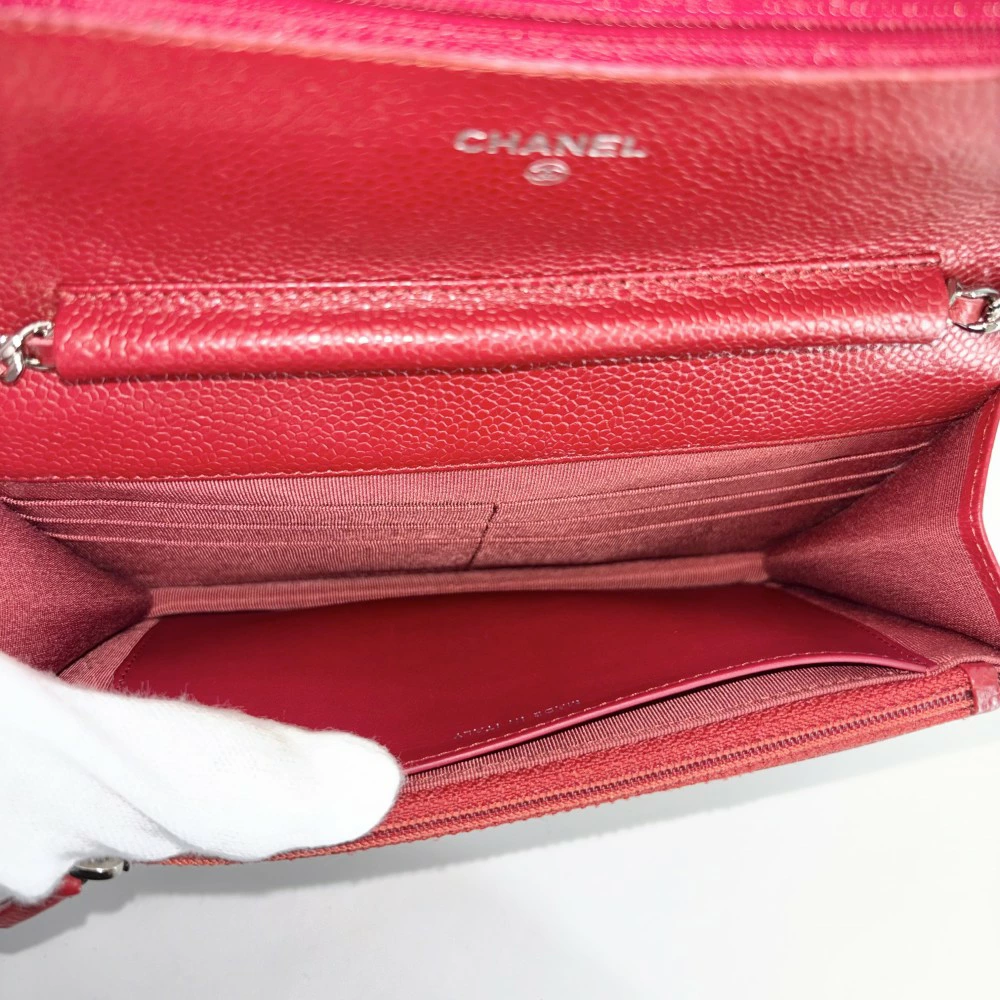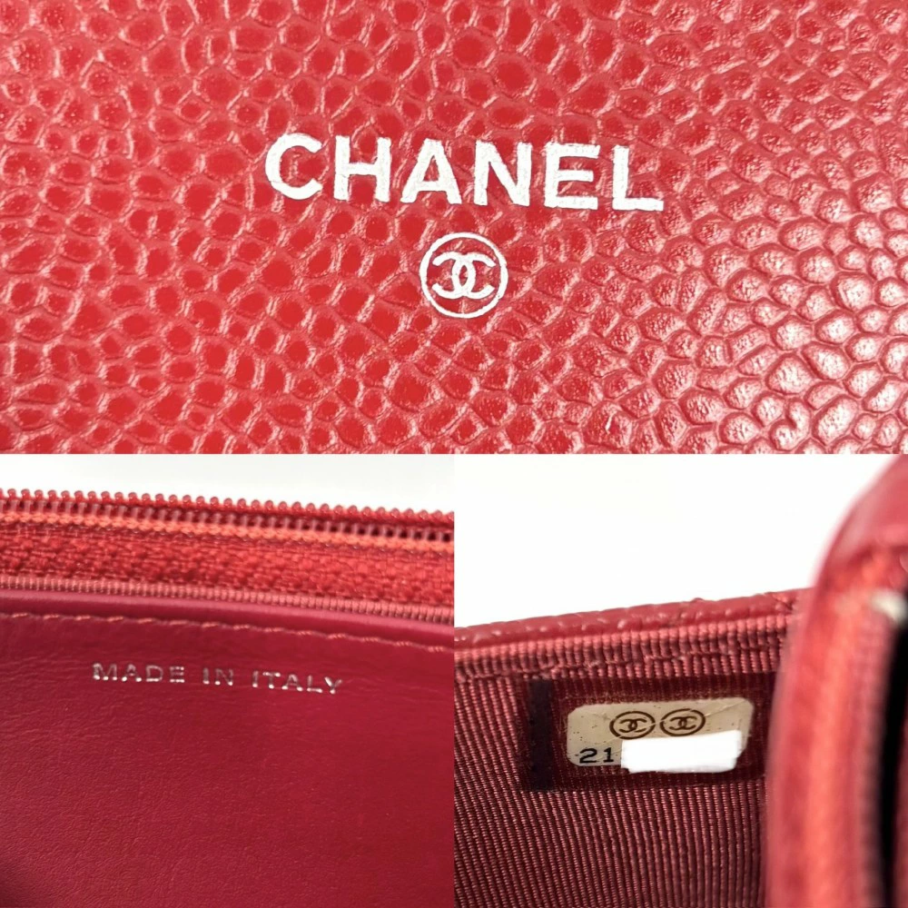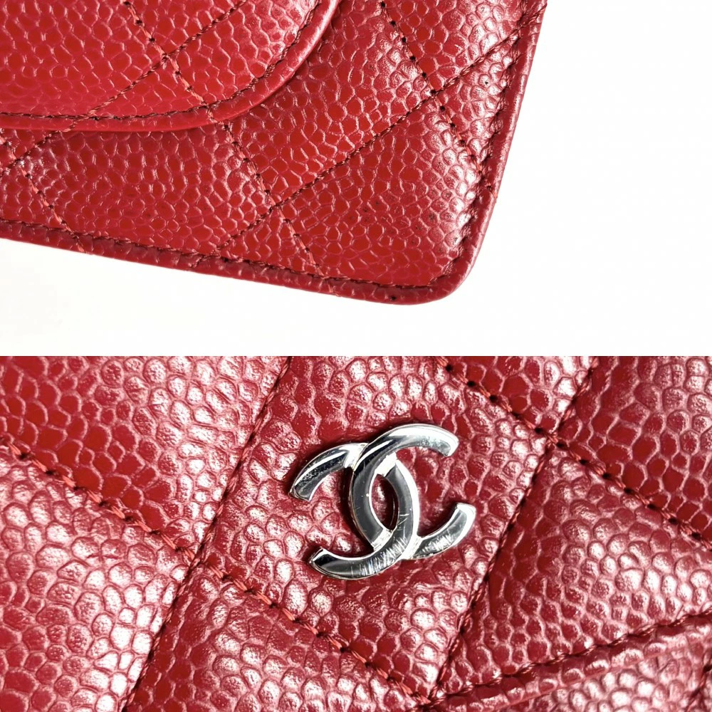 Pre-owned Chanel chain wallet, women's shoulder bag with Coco Mark, crossbody wallet, CHANEL caviar leather, red with silver hardware.