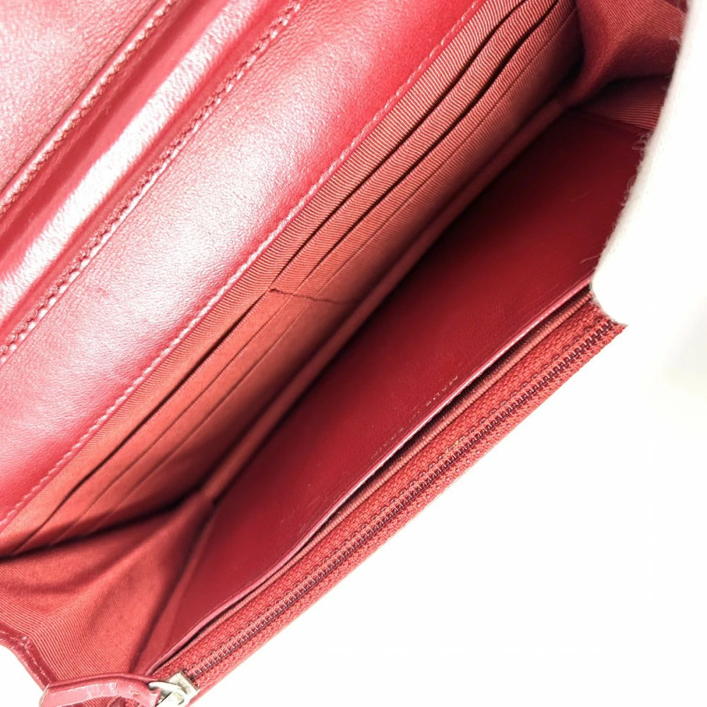 Pre-owned Chanel Women's Matelasse Chain Wallet Mini Shoulder Bag with Coco Mark. This wallet is made of red lambskin and features silver hardware.