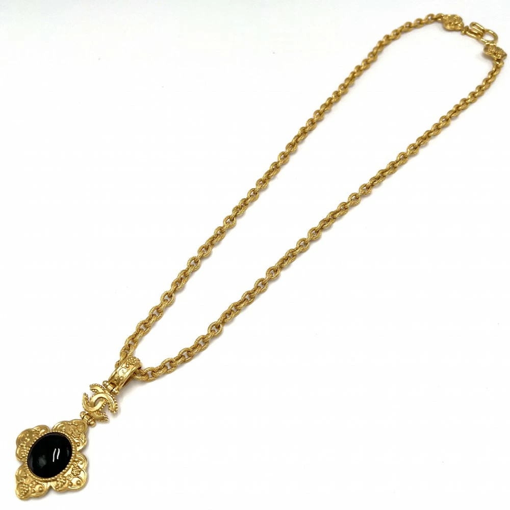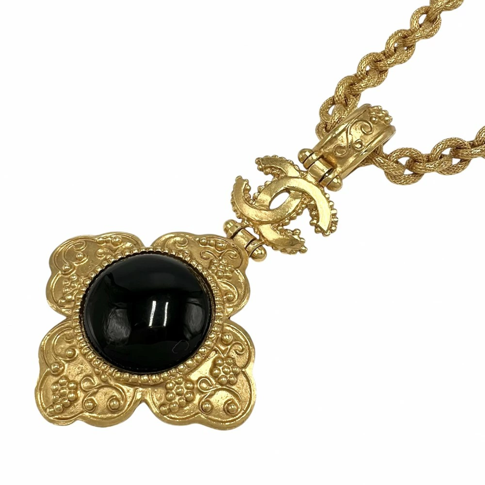 Vintage Chanel Gripoir Long Necklace with Coco Mark and GP Color Stones, 96A Gold and Dark Brown, Approximately 108.0g, Excellent Condition, 1996 [Pre-owned]