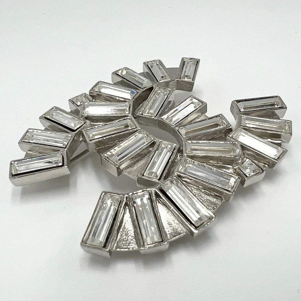 Pre-owned Chanel Brooch for Women, Coco Mark, 2-Way, CHANEL Rhinestone 06A, Silver, Approx. 31.9g, 2006