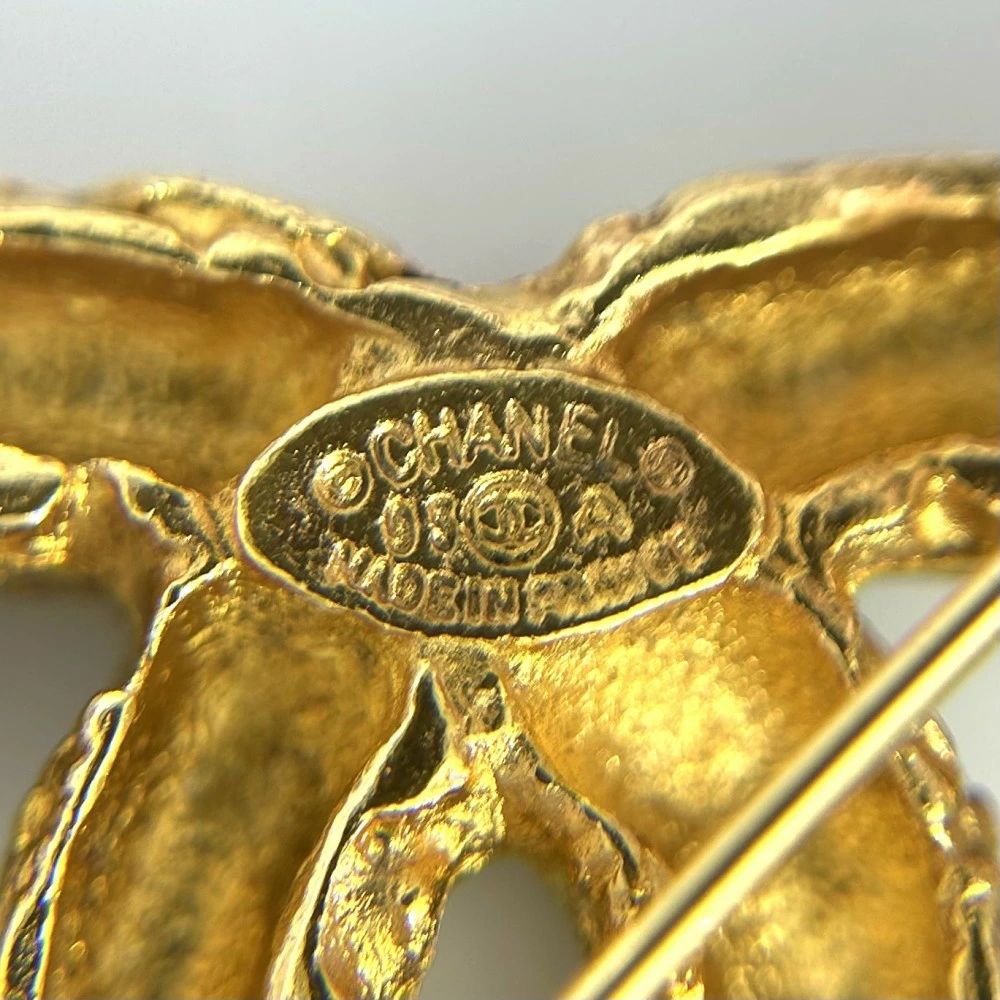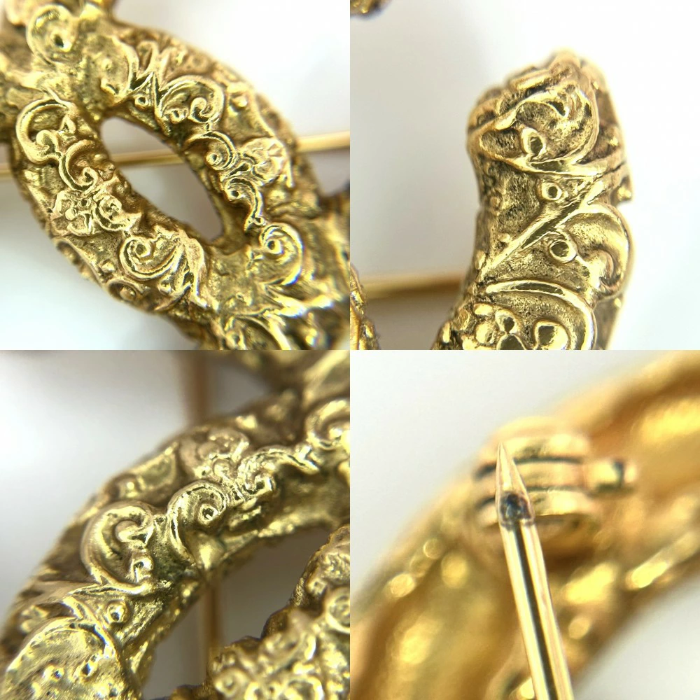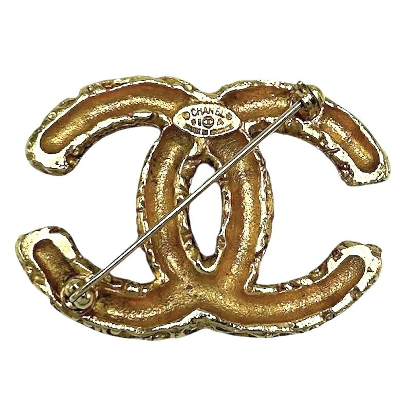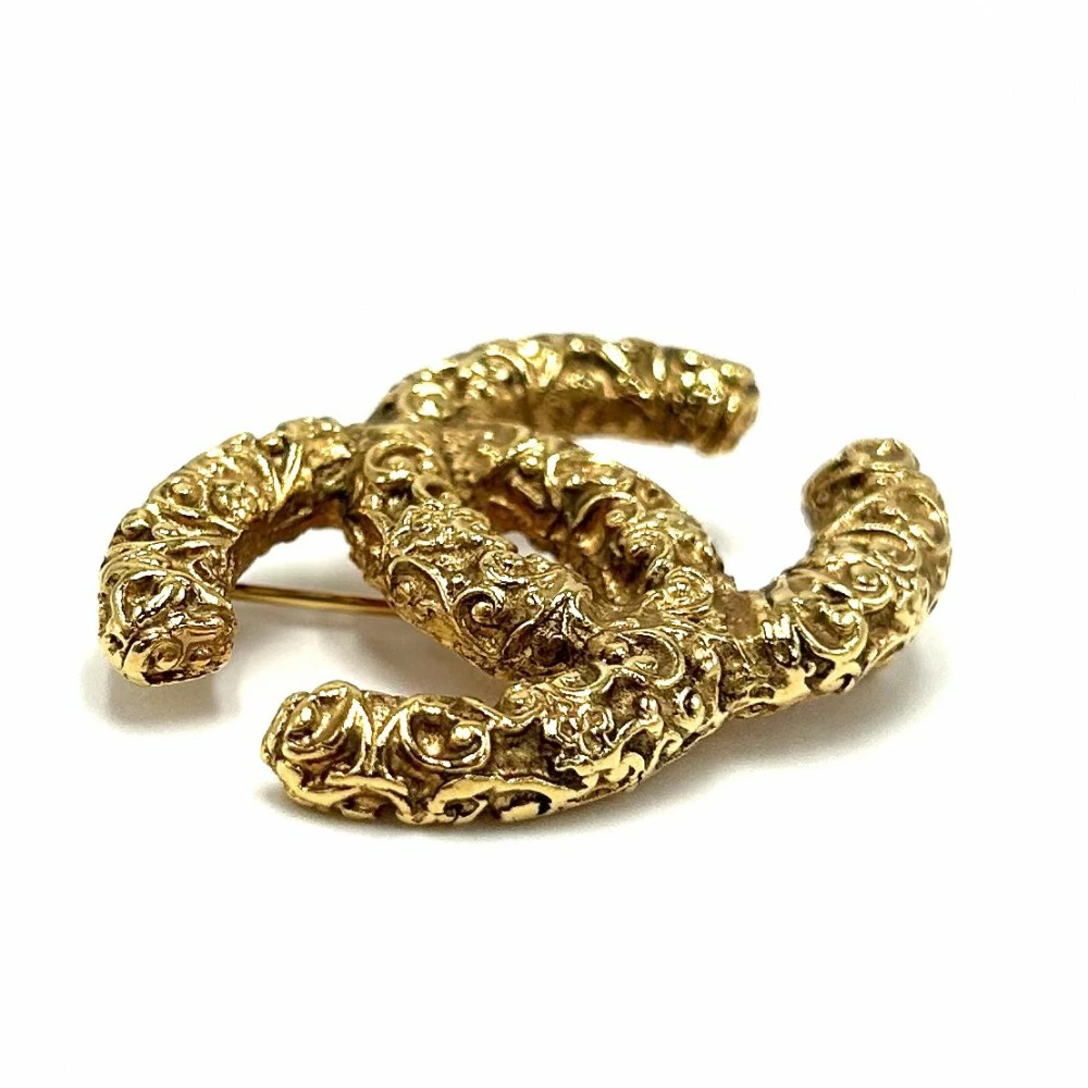Pre-owned Chanel GP 93A gold brooch featuring the Coco mark and lava, approximately 16.5g, 1993.