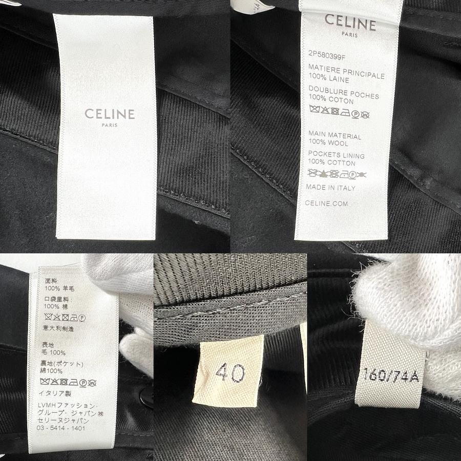 Pre-owned Celine women's wide-leg pants, bottoms, long pants, size 40, black wool.