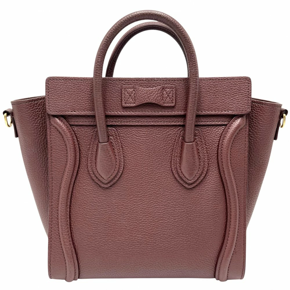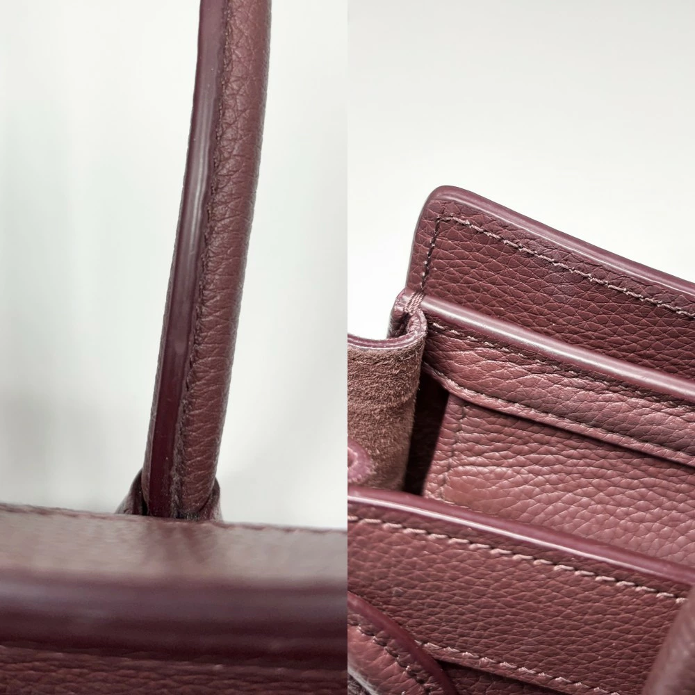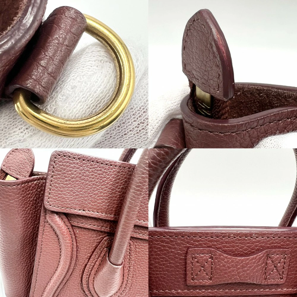 Pre-owned Celine Luggage Nano 2-Way Handbag/Shoulder Bag for Women, Bordeaux Leather, Wine Red with Silver Hardware.