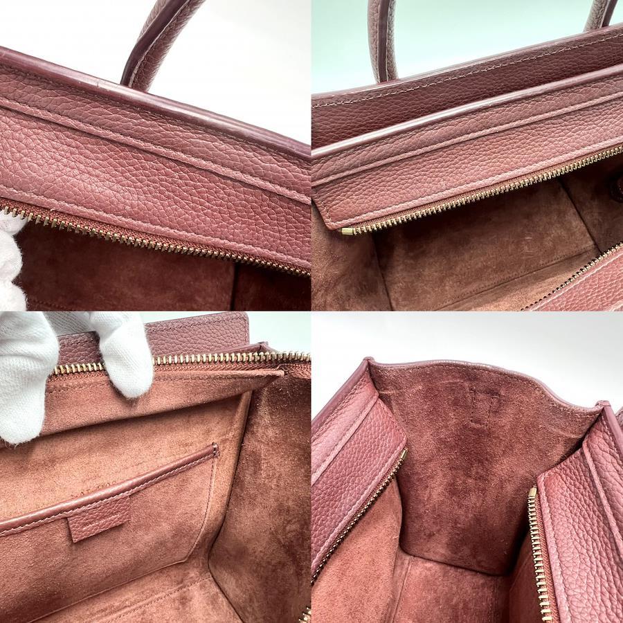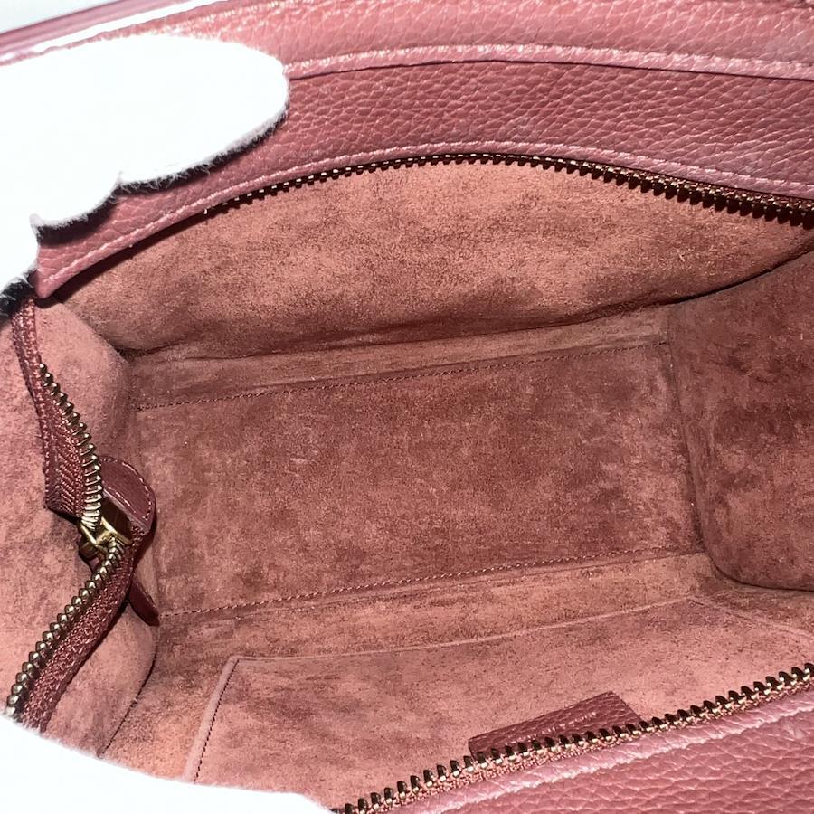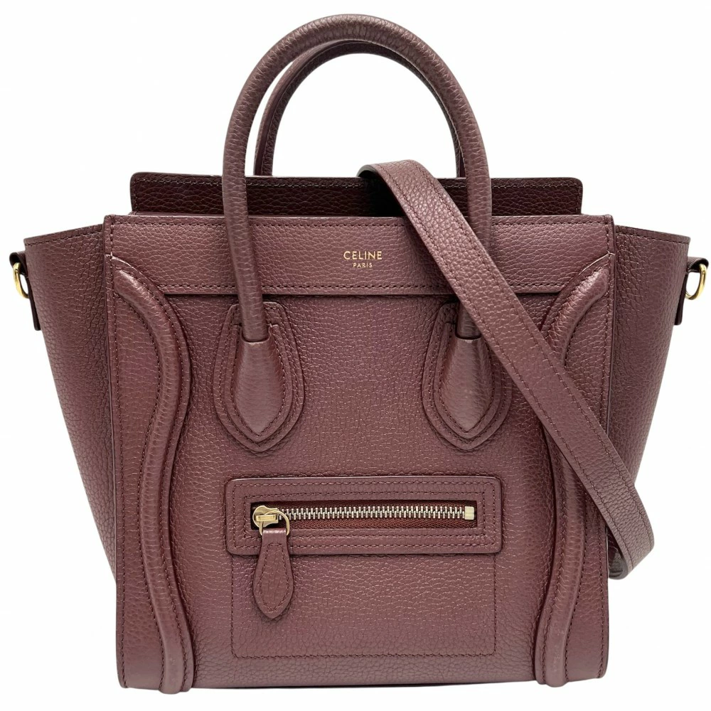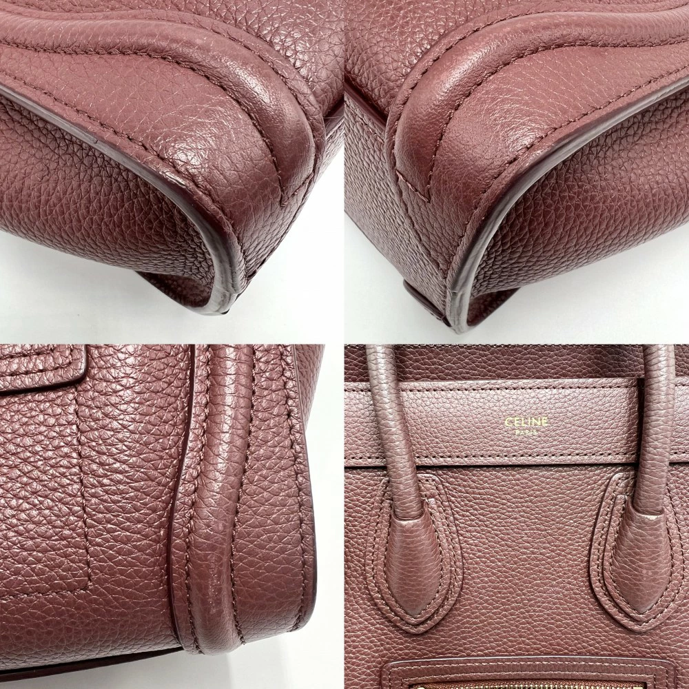 Pre-owned Celine Luggage Nano 2-Way Handbag/Shoulder Bag for Women, Bordeaux Leather, Wine Red with Silver Hardware.