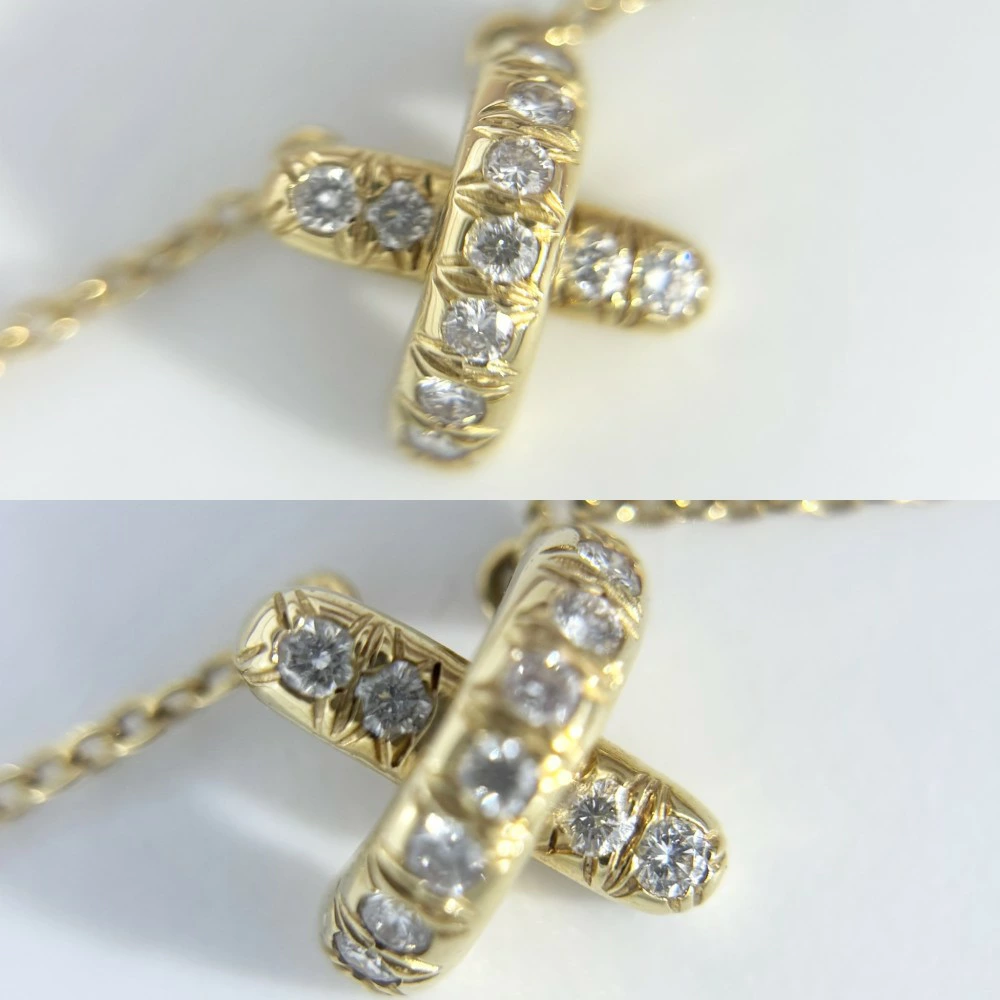 Pre-owned Tiffany & Co. Women's Cross-Stitch Necklace, 18K Yellow Gold (Au750), Diamond and Gold, Approx. 2.8g.