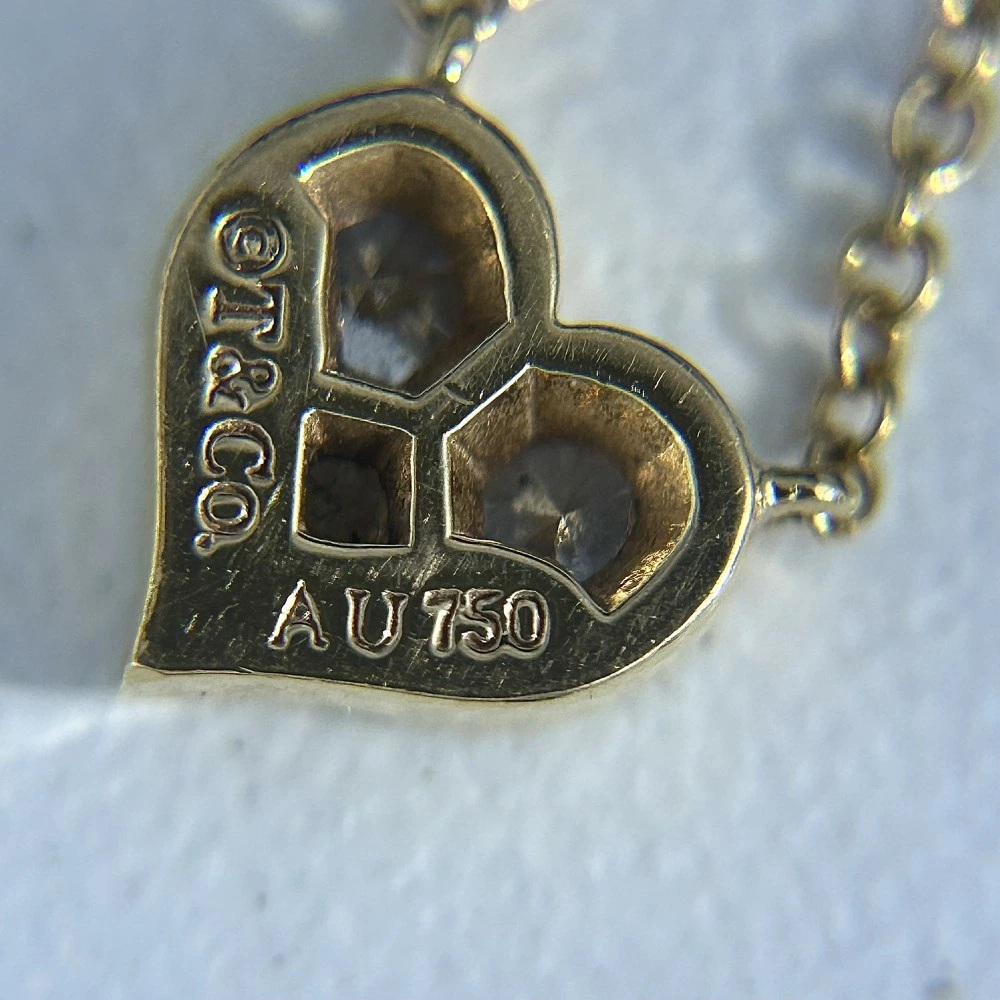 Pre-owned Tiffany & Co. Women's Heart Necklace, 18K Gold, Au750, Diamond, Approx. 2.4g.
