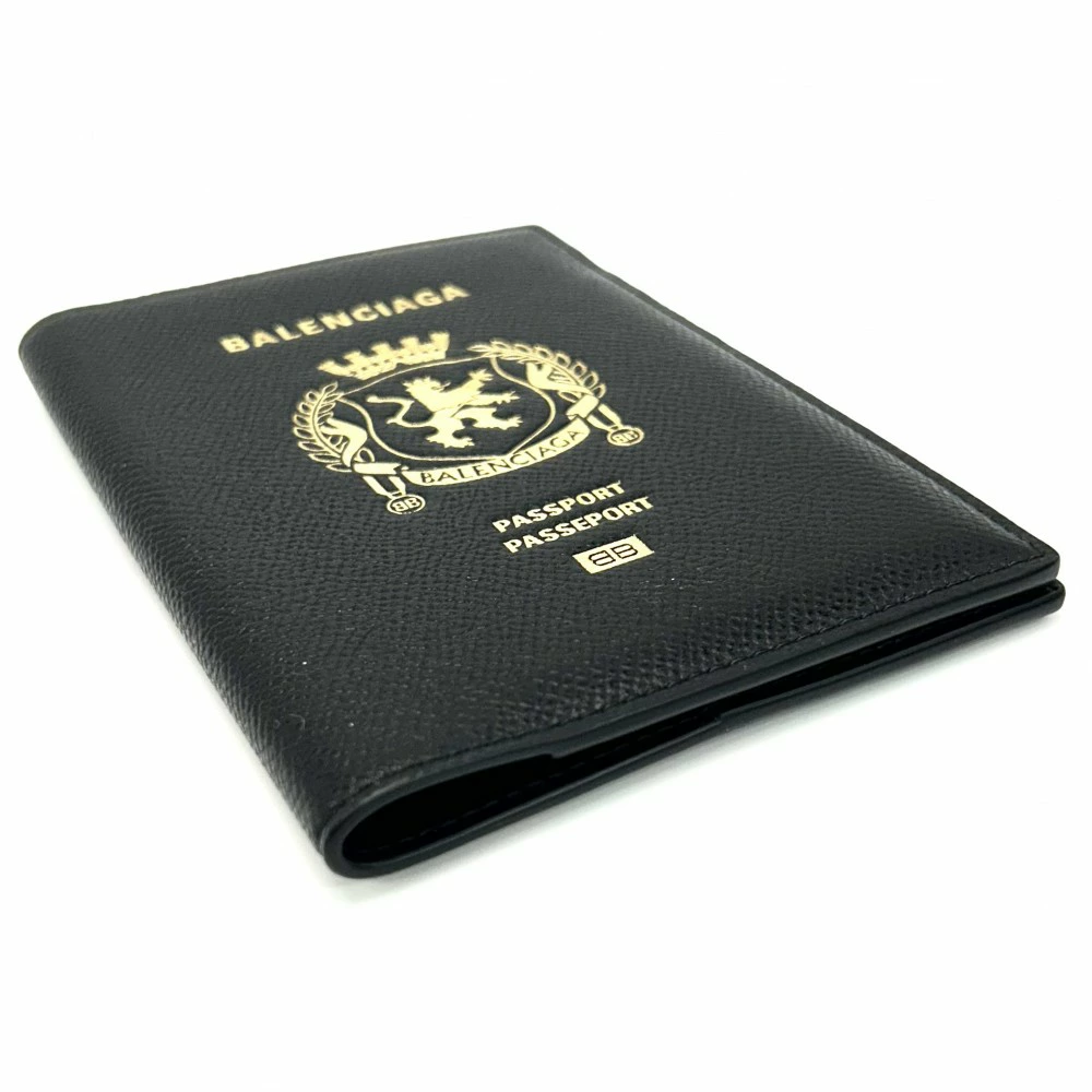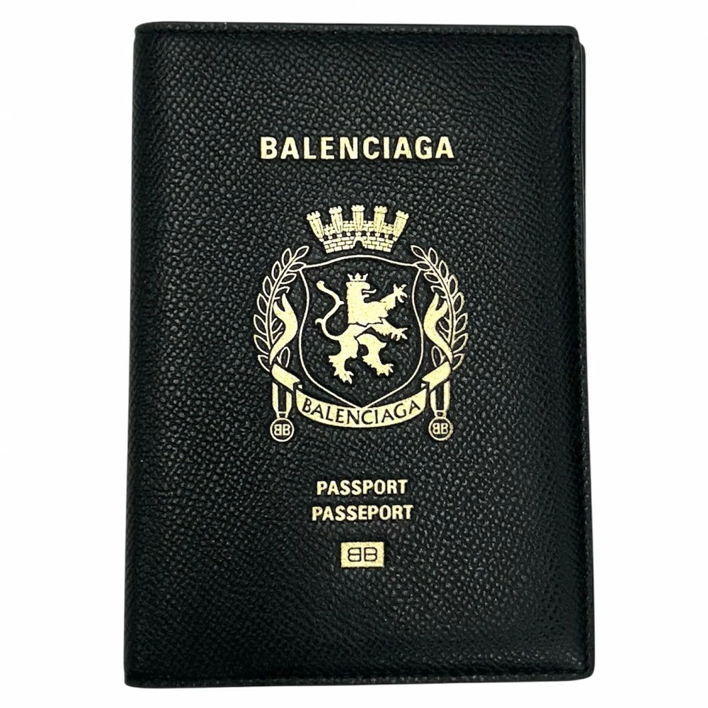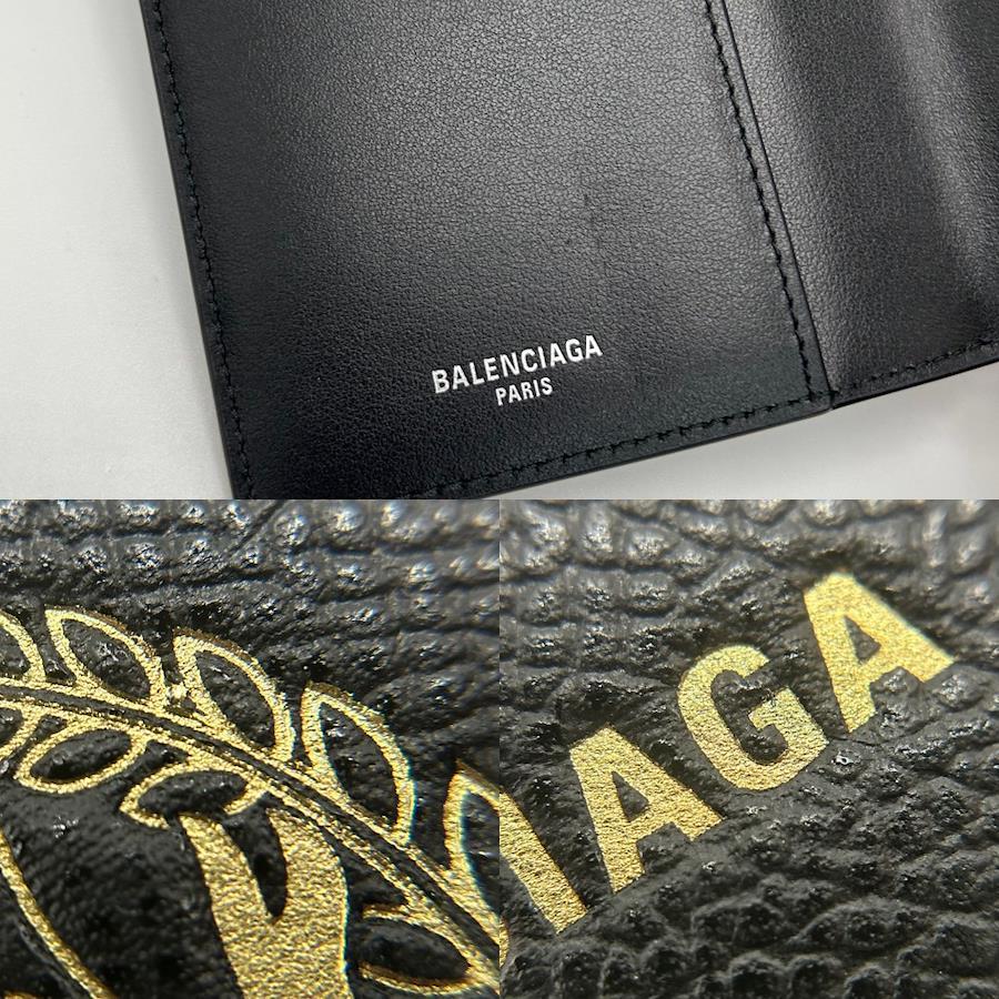 Balenciaga Passport Case, Unisex, Logo Print, Card Case, BALENCIAGA 787742, Leather, Black and Gold, Excellent Condition [Pre-owned]