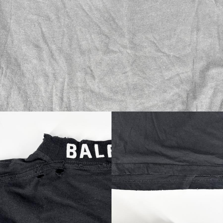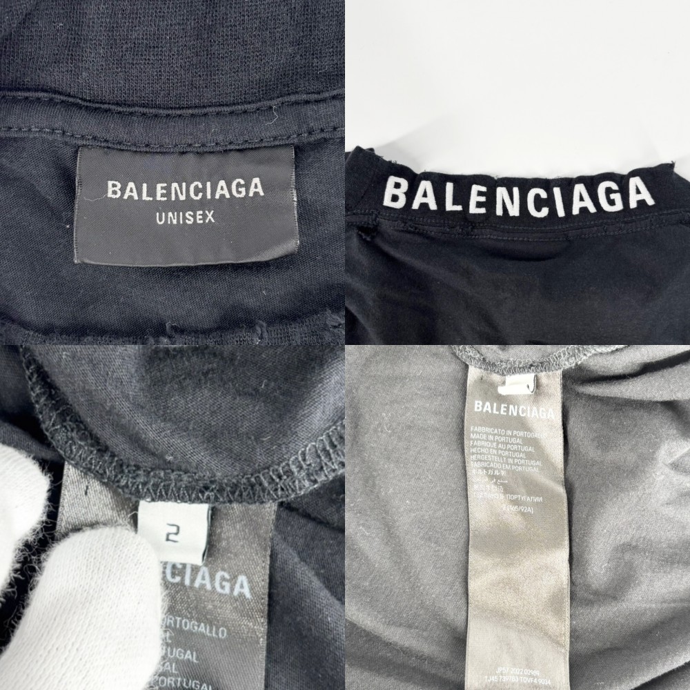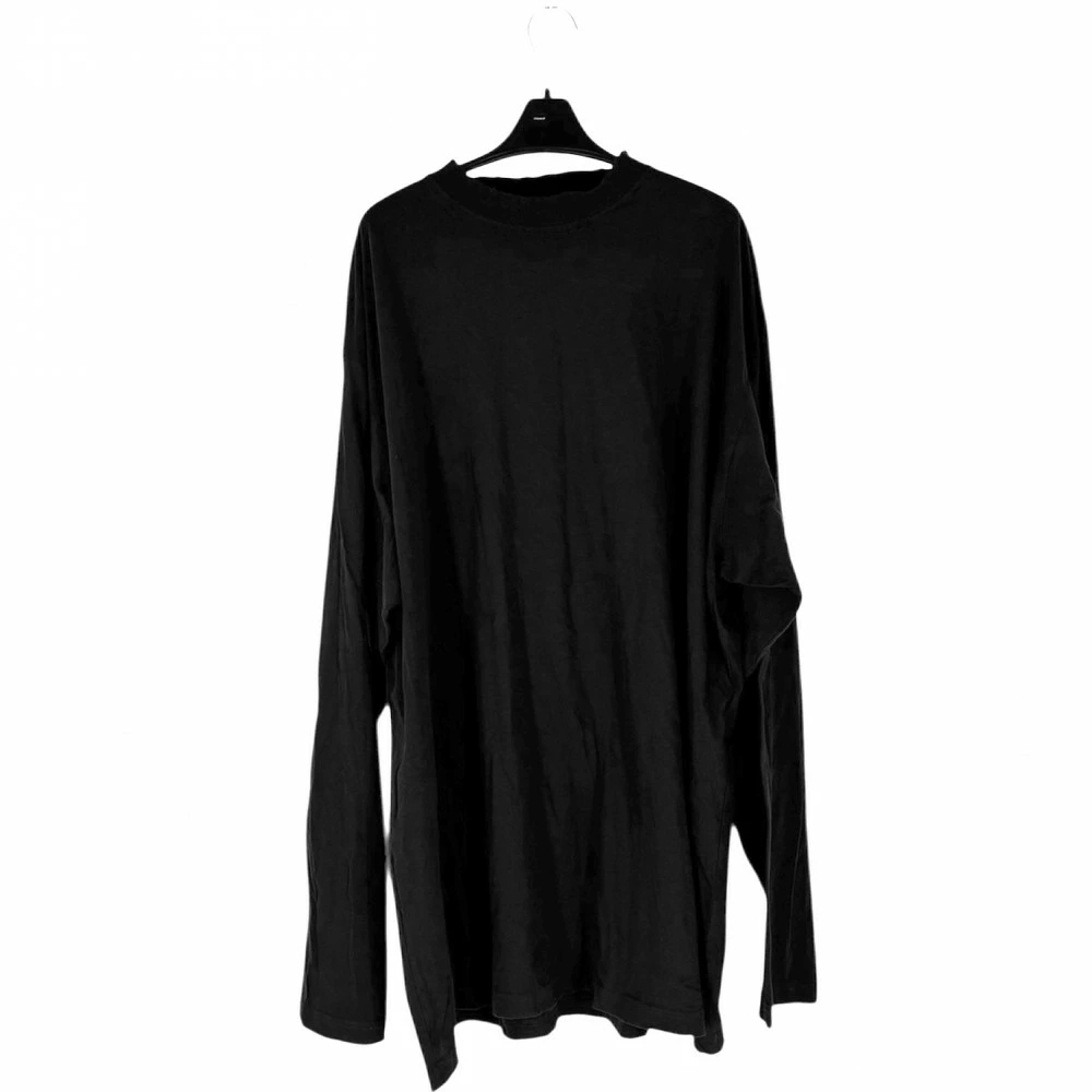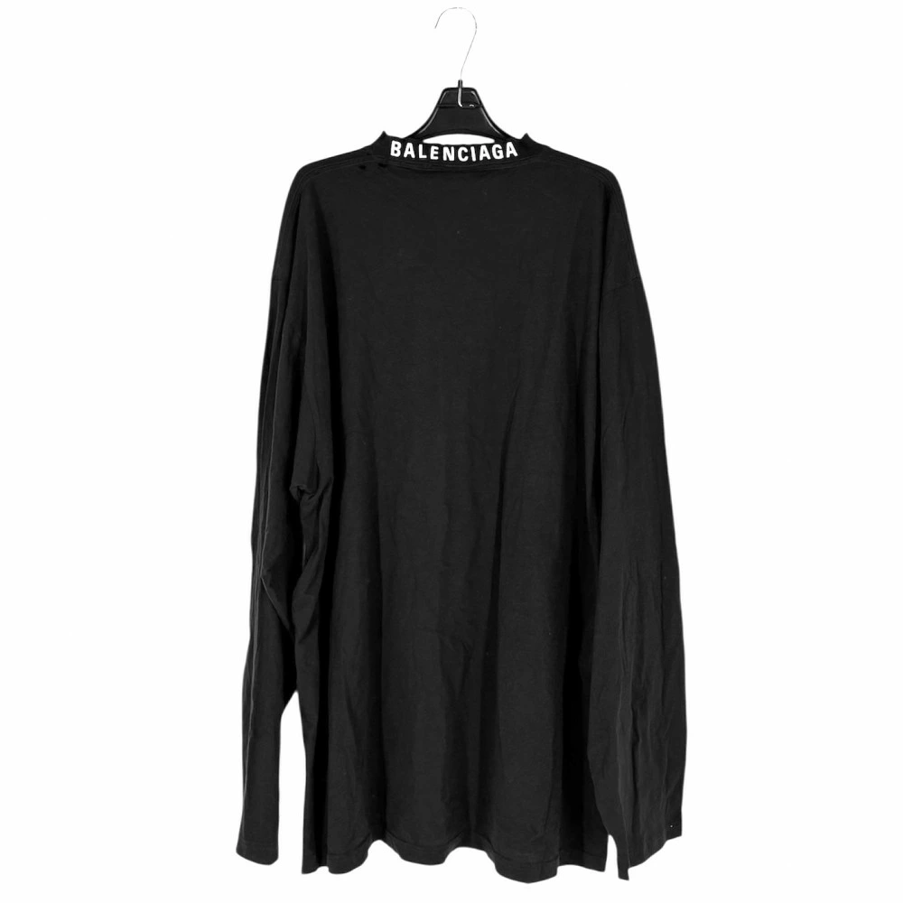 Pre-owned Balenciaga long-sleeved crew neck T-shirt with a distressed logo and oversized design, size 2, BALENCIAGA 739783, black cotton, suitable for spring and autumn.