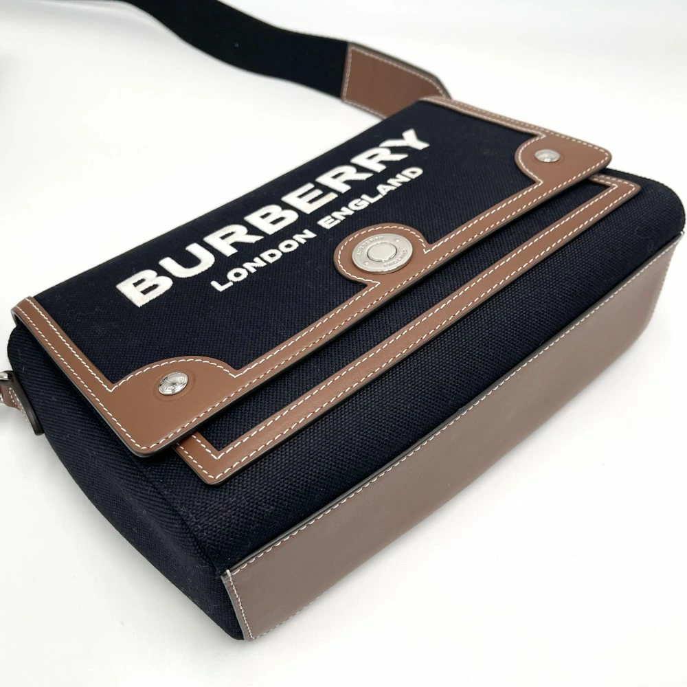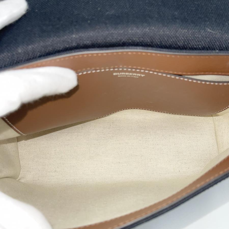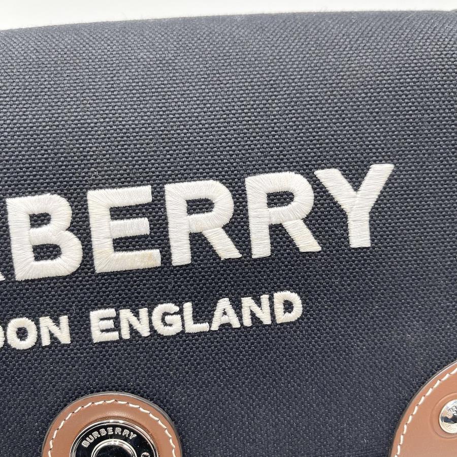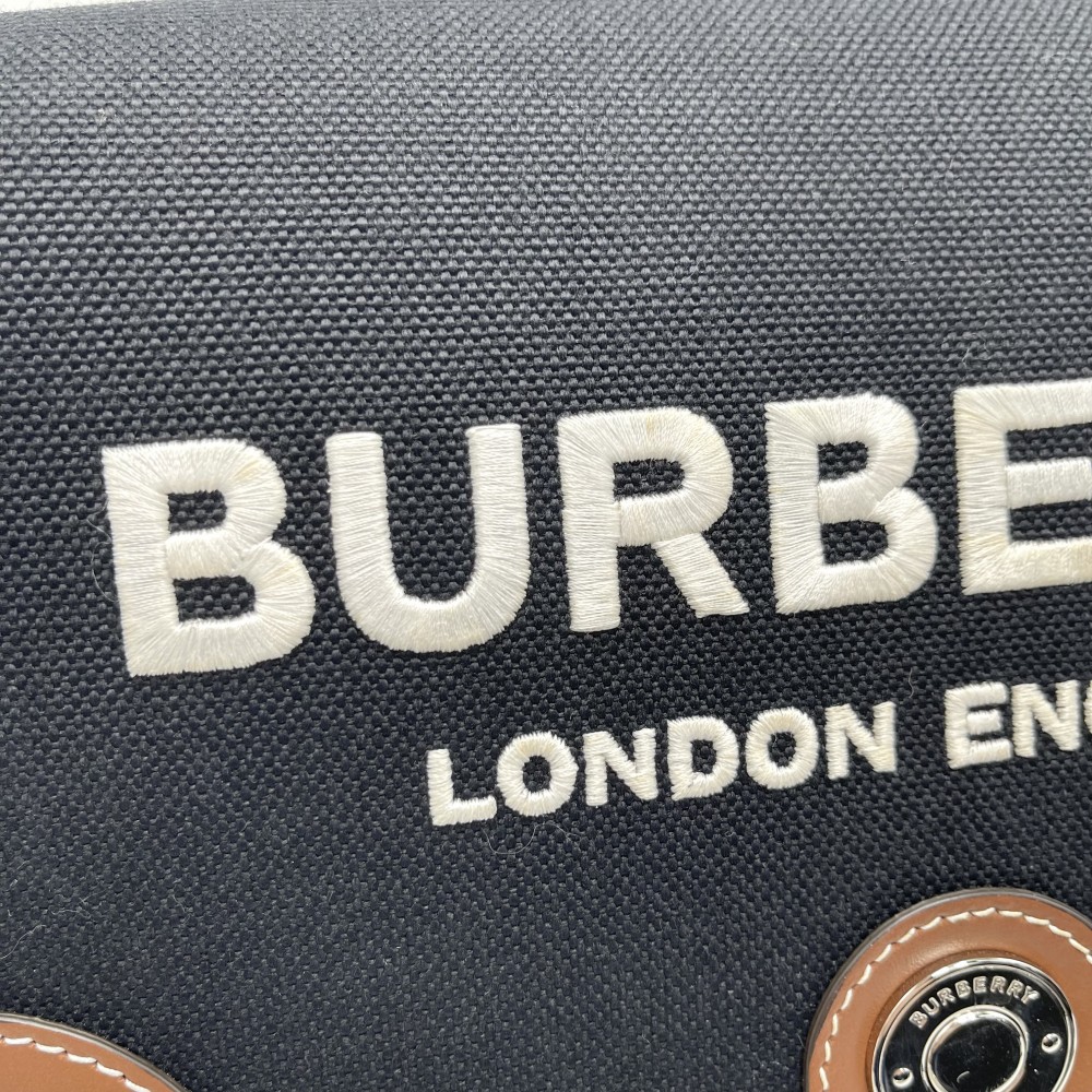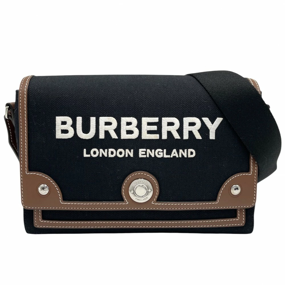 Pre-owned Burberry shoulder bag, unisex, with a logo, shoulder or crossbody design, model 8055748, made of canvas and leather in black or brown with silver hardware.