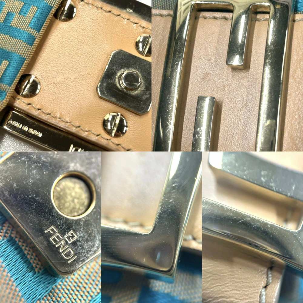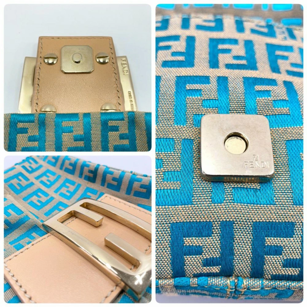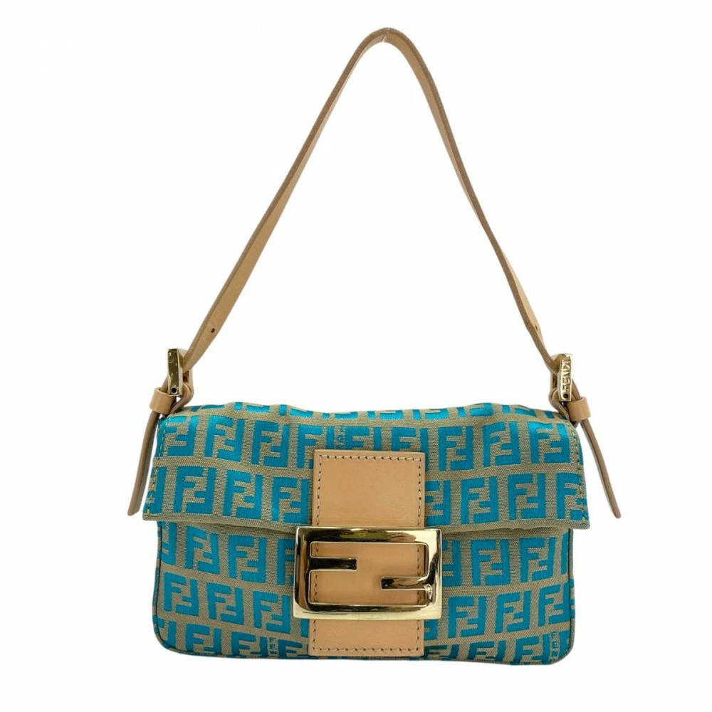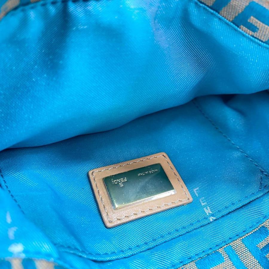 Pre-owned Fendi Women's Zucchino Mini Mamma Bucket Shoulder Bag, One-Shoulder Handbag, FENDI 8BK005, Canvas, Leather, Blue, Beige, Gold Hardware