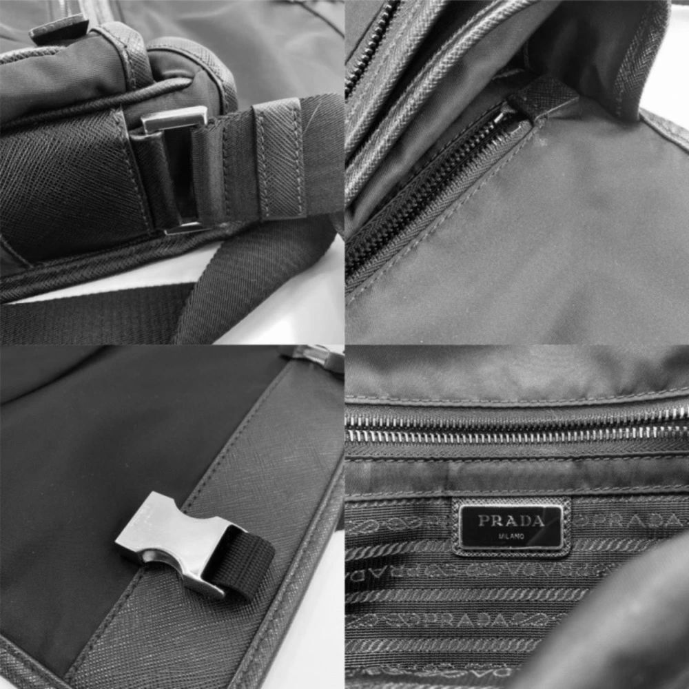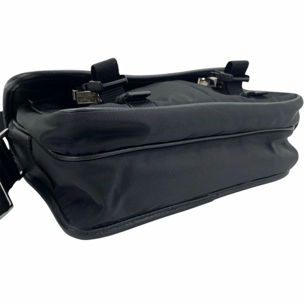 Pre-owned Prada unisex shoulder bag with a triangle logo and flap, featuring silver hardware and a crossbody design. Model number: 2VD769. Black.