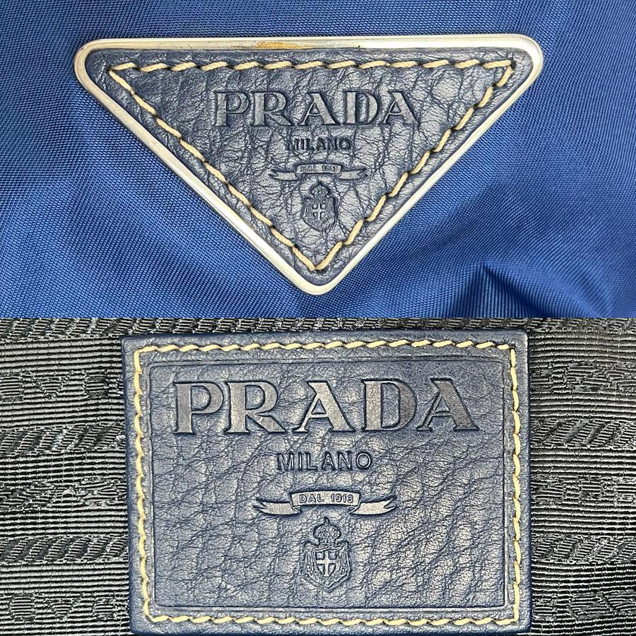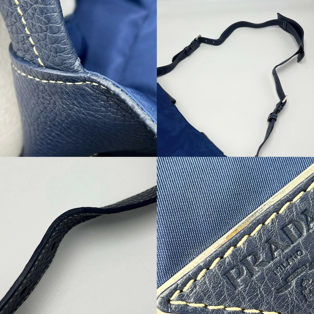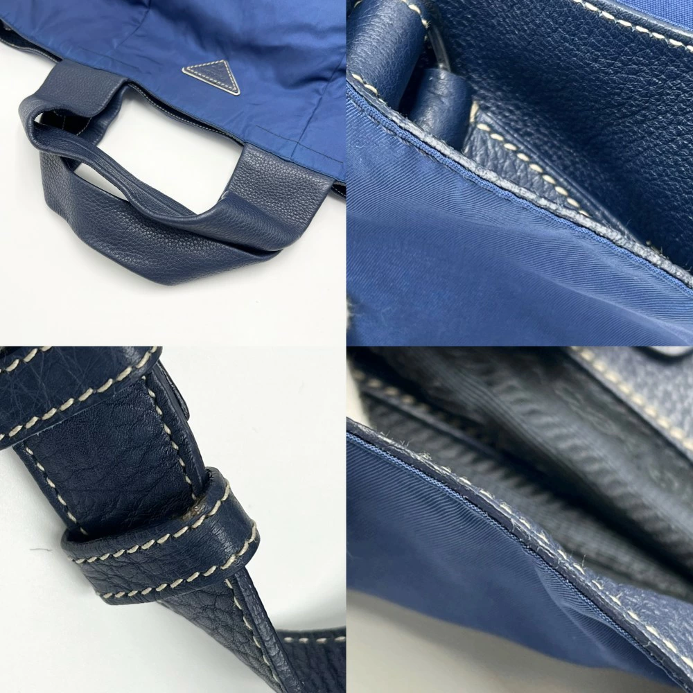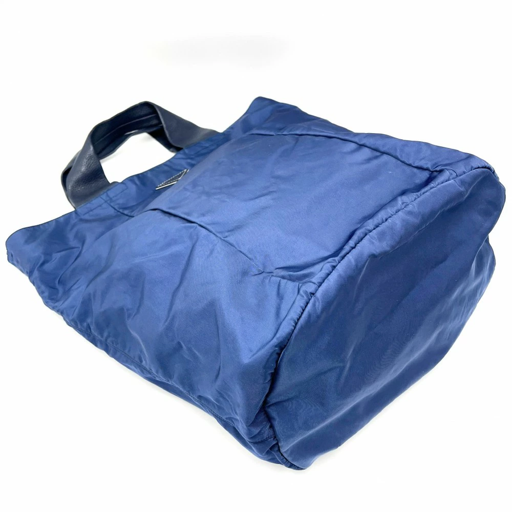 Pre-owned Prada VA0679 Men's Triangle Logo Tote Bag, Shoulder Bag, Crossbody Bag, Nylon Leather, Blue, Navy Blue, Silver Hardware