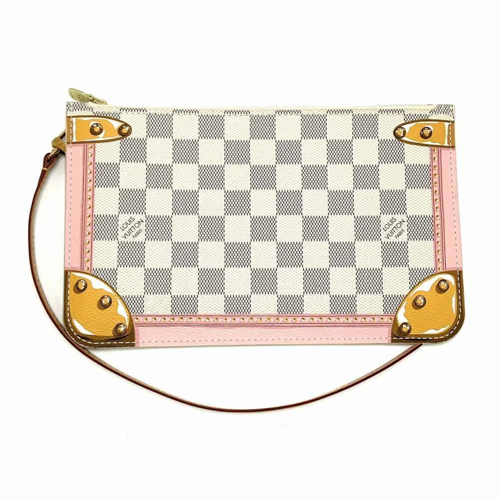 Pre-owned Louis Vuitton Neverfull MM Tote Bag, Women's Summer Trunk, N41065, Damier Azur Canvas, White with Gold Hardware.