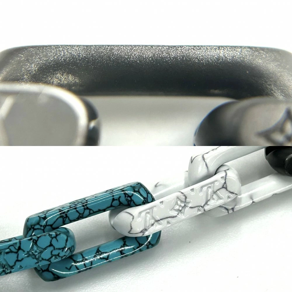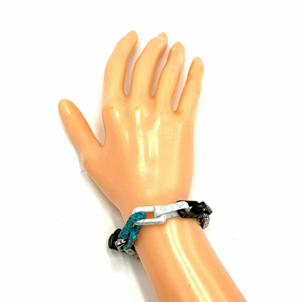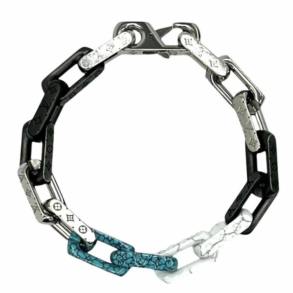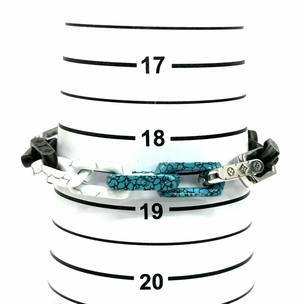 Pre-owned Louis Vuitton Men's Monogram Chain Stone Bracelet, White, Black, Silver, M1042L, Approx. 51.9g