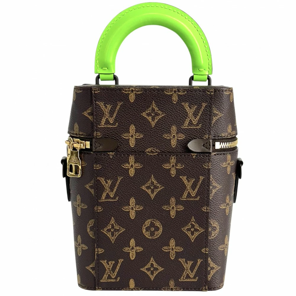 Pre-owned Louis Vuitton Men's 2-Way Vertical Box Trunk, Handbag, Shoulder Bag, Crossbody Bag, Virgil Abloh No. 7, M59664, Monogram Canvas, Brown, Green, Gold Hardware, Excellent Condition