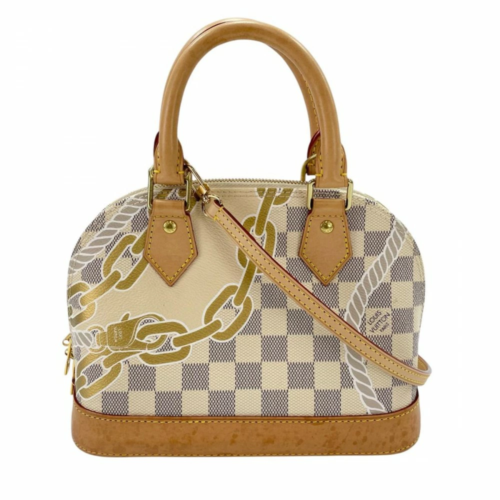 Pre-owned Louis Vuitton Alma BB Nautical Collection Handbag/Shoulder Bag (N40472) for Women, Damier Azur Canvas, White/Beige with Gold Hardware.