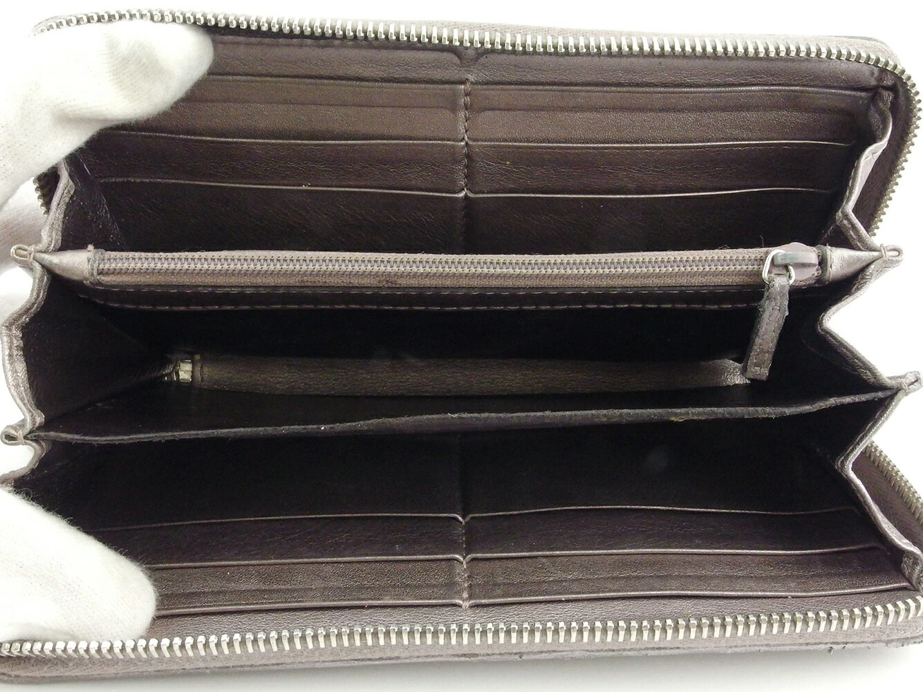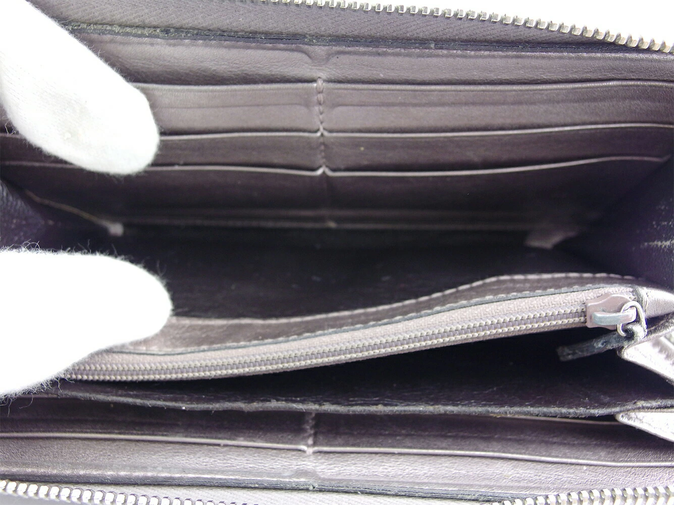 | コンディション | 全体の状態詳細:まだまだお使いいただけます。 スレ&汚れ(内側&札入れ&小銭入れもあり) 傷(内側) ほつれ(角付近) 金具傷 パイピング破れ(上部&角付近) スレ強(内側上部縁) コバハガレ(ファスナープル革) 付着汚れ(札入れ) ラメハガレ小(革) などの使用感があります。 |