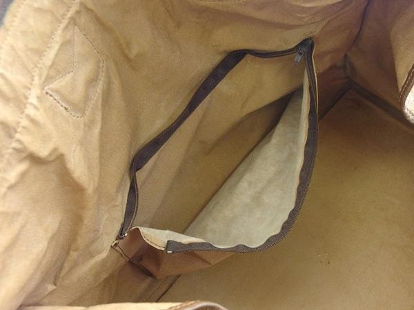 外側:PVC(フロント?右側面に一部に色褪せ箇所)、パイピング(角スレ、傷)、持ち手(接続金具に傷)、ファスナー金具(コーティングハゲ)あり。