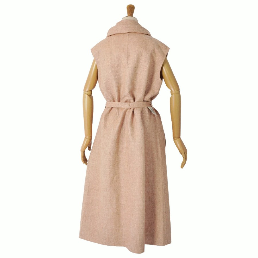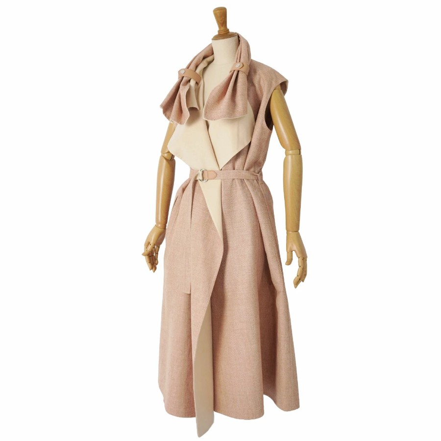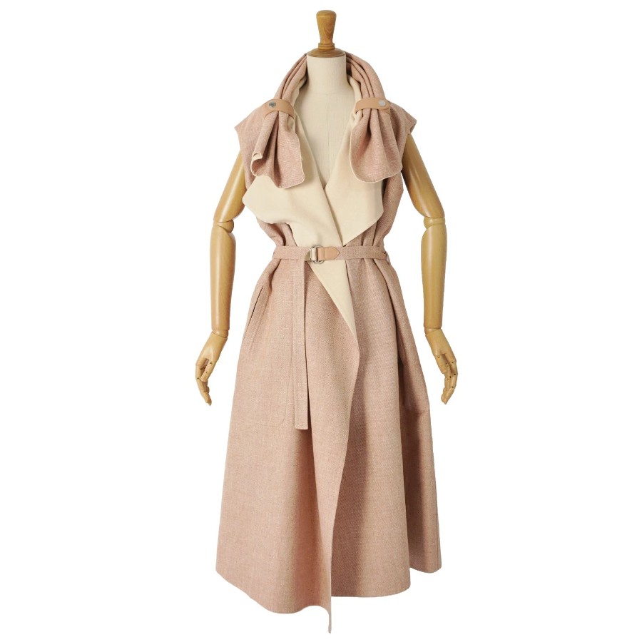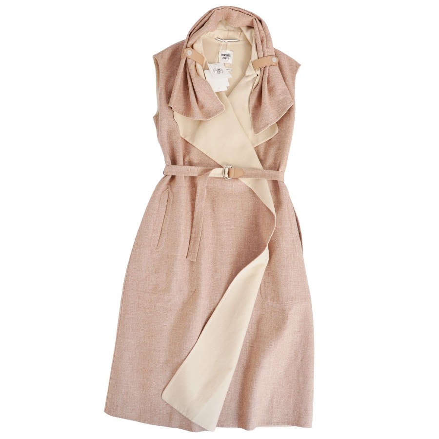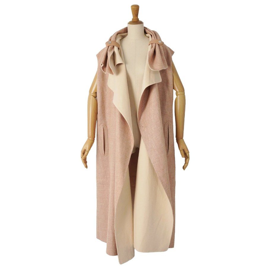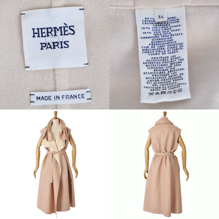 エルメス HERMES コート ラップコート ロングコート ジレ ノースリーブ ベルト付き カシミヤ ダブルフェイス アウター レディース ベージュ サイズ34(XS相当)