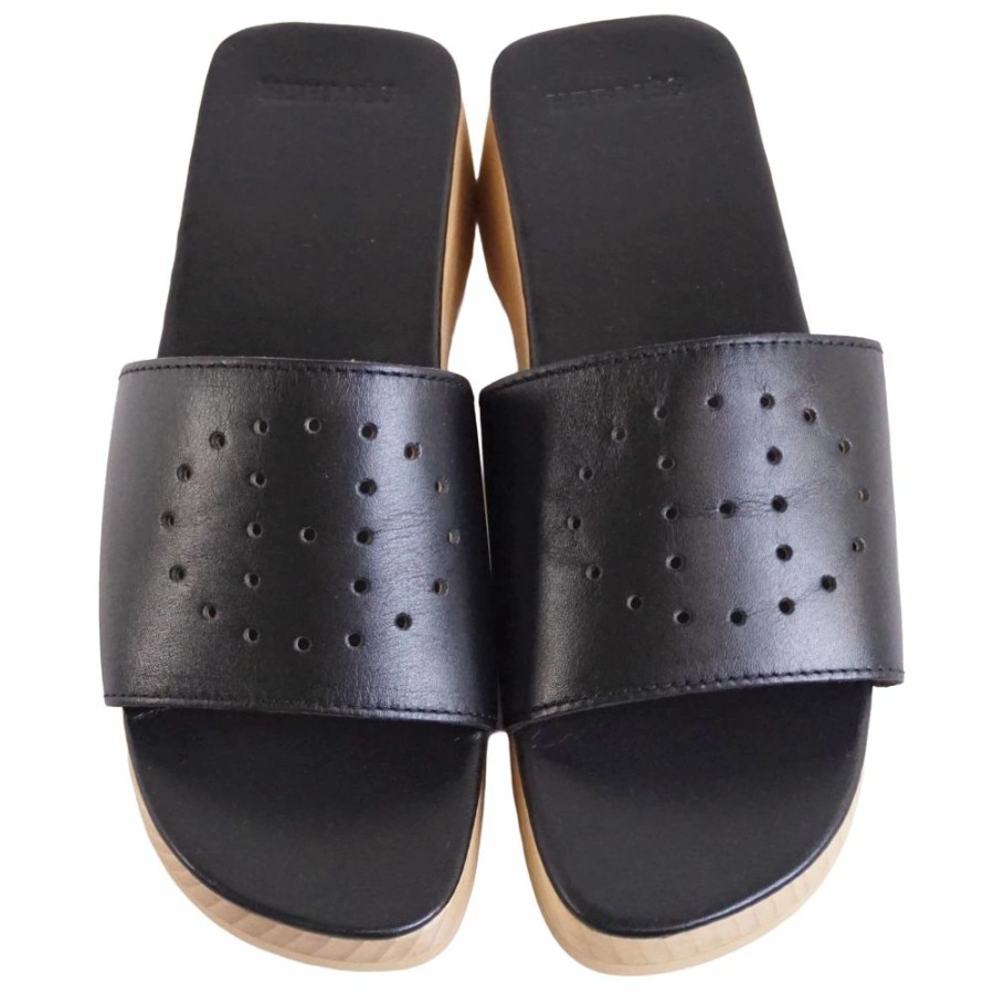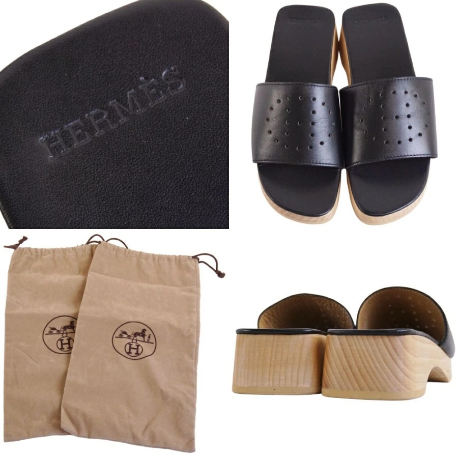 エルメス HERMES サンダル エブリン ウッドサンダル レザー シューズ 靴 レディース スペイン製 ブラック サイズ36(23cm相当)