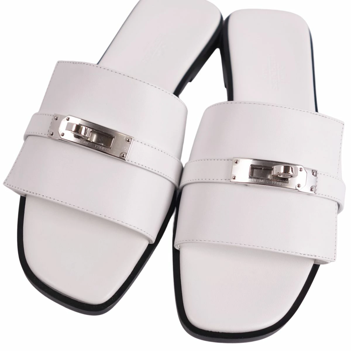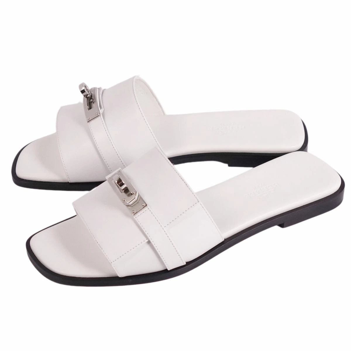 ■商品名エルメス HERMES サンダル 2023 ジュリア ケリー金具 レザー シューズ 靴 レディース イタリア製 ホワイト サイズ36(23cm相当)■状態説明・上質なレザーを贅沢に使用した、HERMES「ジュリア」サンダルです♪・ホワイトのカラーリングにアイコニックなケリー金具が目を引く一品です◎・イタリア製・新古品(未使用品)です。【季節感:春夏】【付属品:箱/保存袋】■素材レザー■カラーホワイト■表記サイズ36(23cm相当)■実寸サイズヒール:約1cm幅:約8.5cmインソール全長:約23cm■状態ランクSS 未使用品・新古品■店舗管理番号ce07ot-rm20e32386womens_white