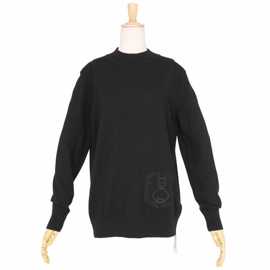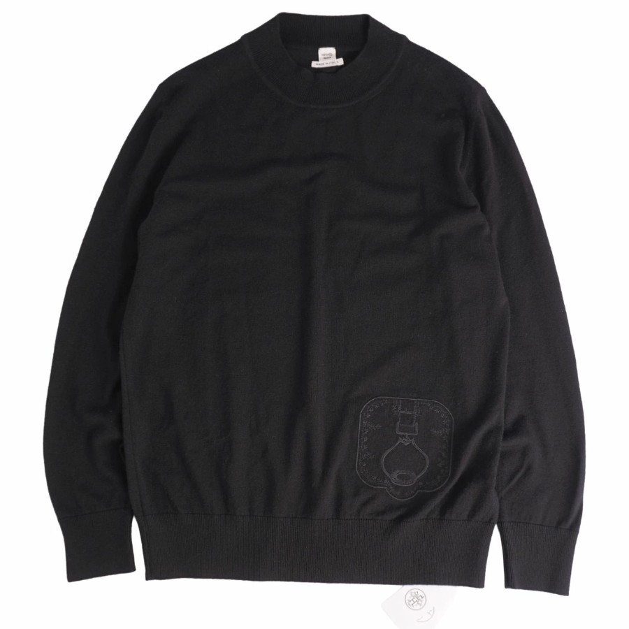 エルメス HERMES ニット 24SS セーター ロングスリーブ 長袖 ウール カシミヤ トップス レディース イタリア製 ブラック サイズ40(L相当)