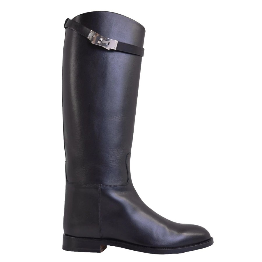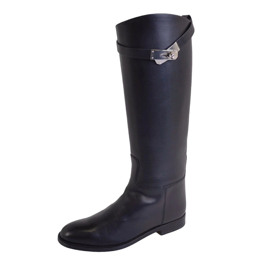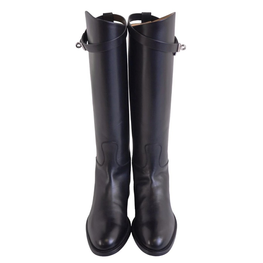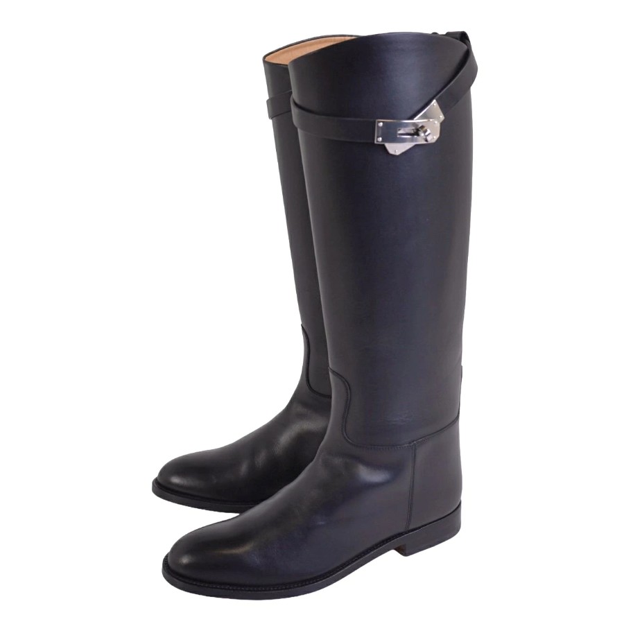 エルメス HERMES ブーツ 2024 ロングブーツ ジャンピングブーツ ケリー金具 レザー シューズ レディース ブラック サイズ37(24cm相当)