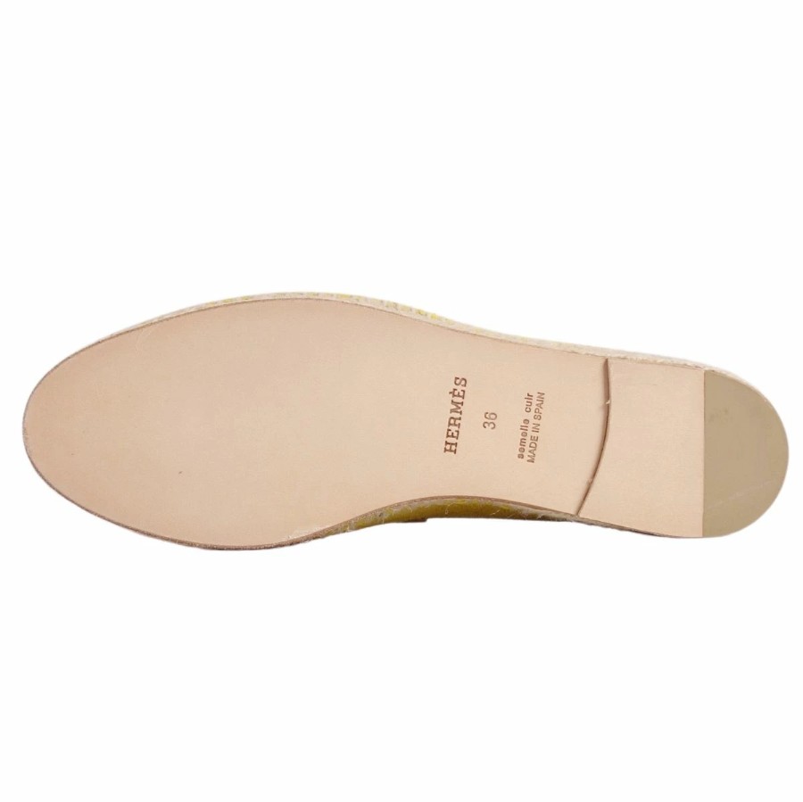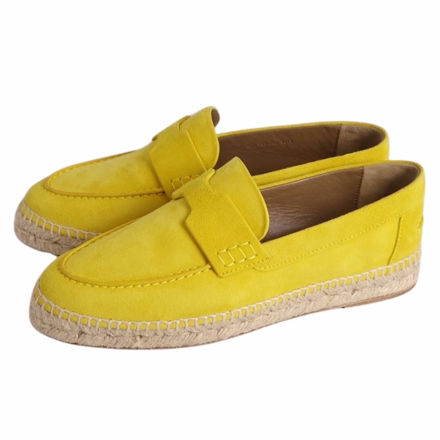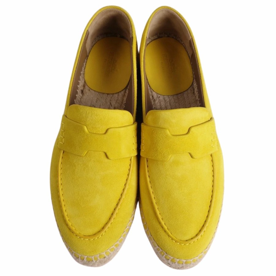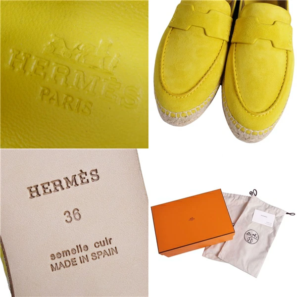 エルメス HERMES ローファー Trip トリップ モカシン エスパドリーユ スウェードレザー シューズ 靴 レディース スペイン製 イエロー サイズ36(23cm相当)