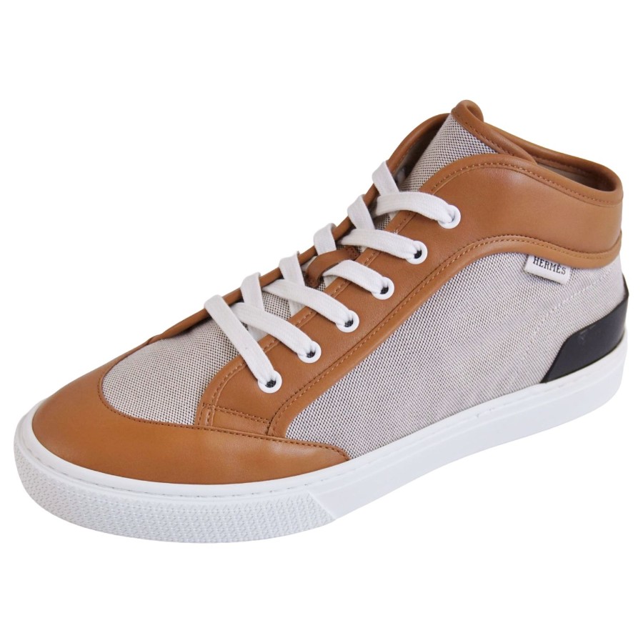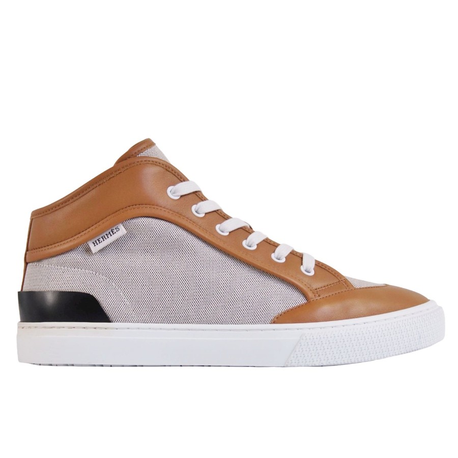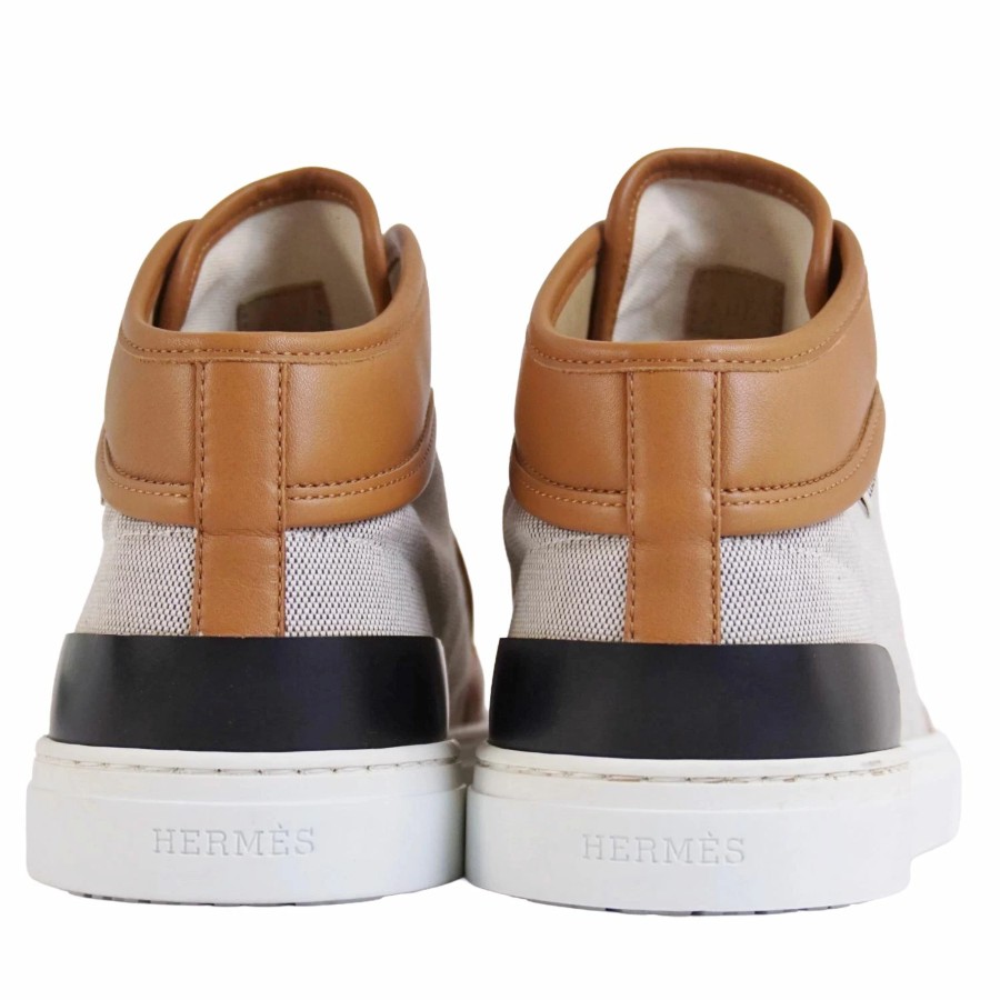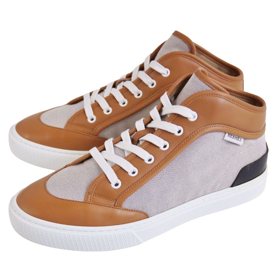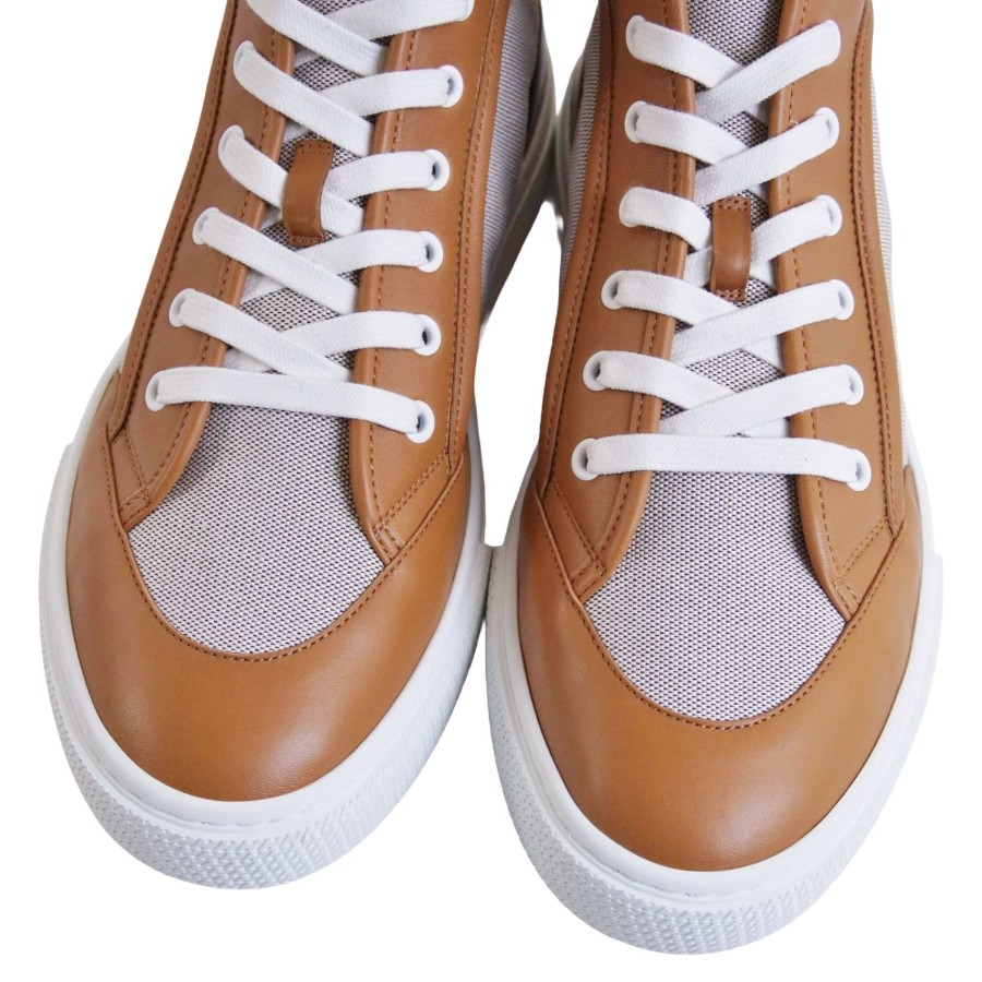 エルメス HERMES 2021年 Enjoy エンジョイ スニーカー ハイカット レースアップ レザー キャンバス シューズ 靴 メンズ ベージュ/ブラウン サイズ40.5(25.5cm相当)