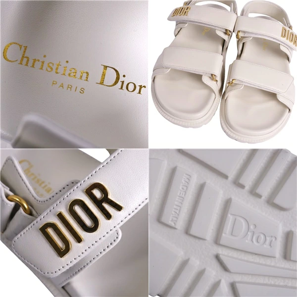 クリスチャンディオール Christian Dior サンダル Dioract ディオールアクト ロゴ ラムレザー シューズ 靴 レディース イタリア製 ホワイト サイズ35.5(22.5cm相当)