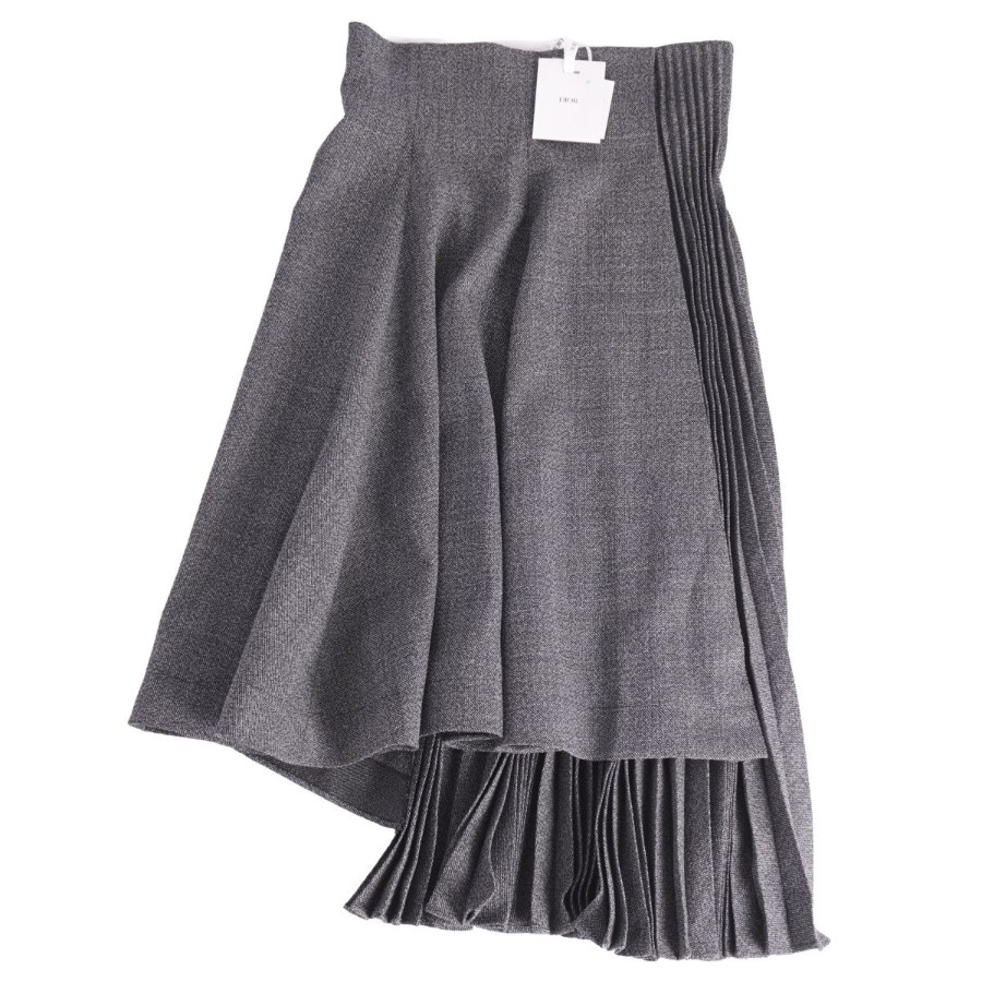 クリスチャンディオール Christian Dior スカート 2022 ロングスカート プリーツ ウール ボトムス レディース フランス製 グレー サイズI46(XL相当)