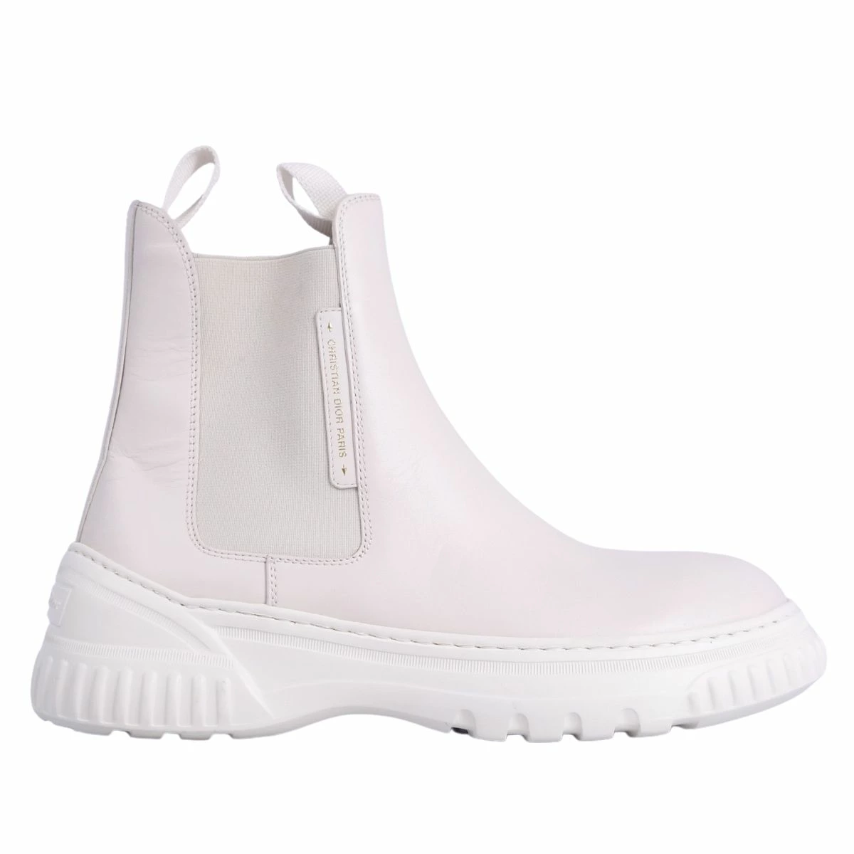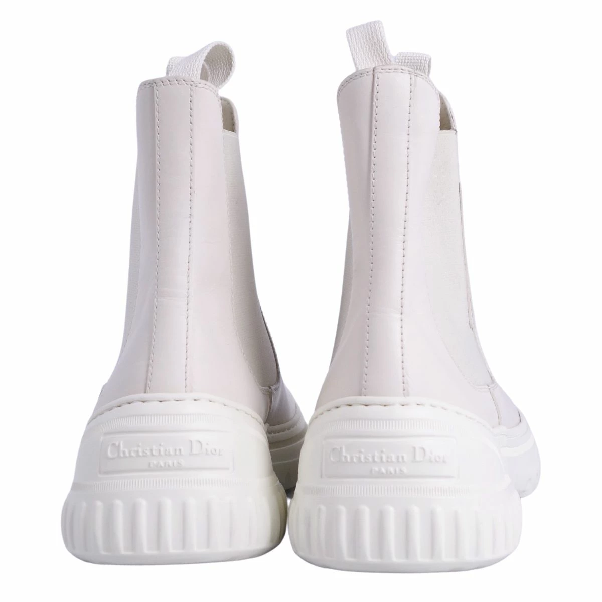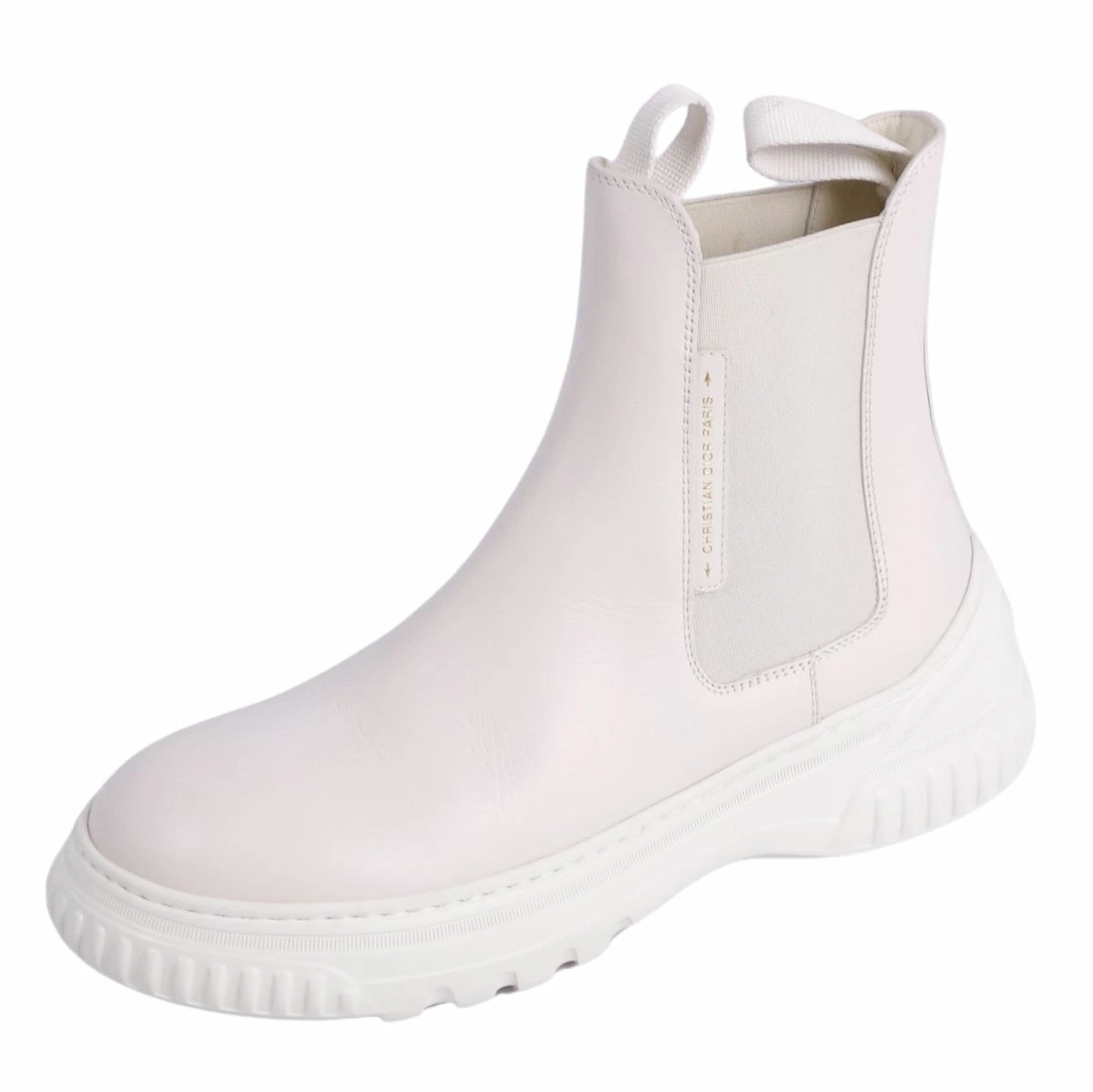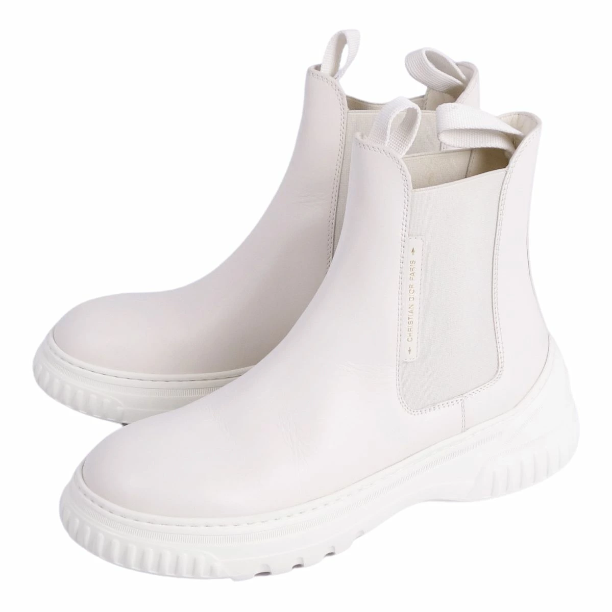 Pre-owned Christian Dior D-RACER Side Gore Boots, Leather, Women's, Made in Italy, Size 37D (equivalent to 24cm), White.