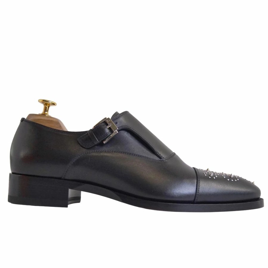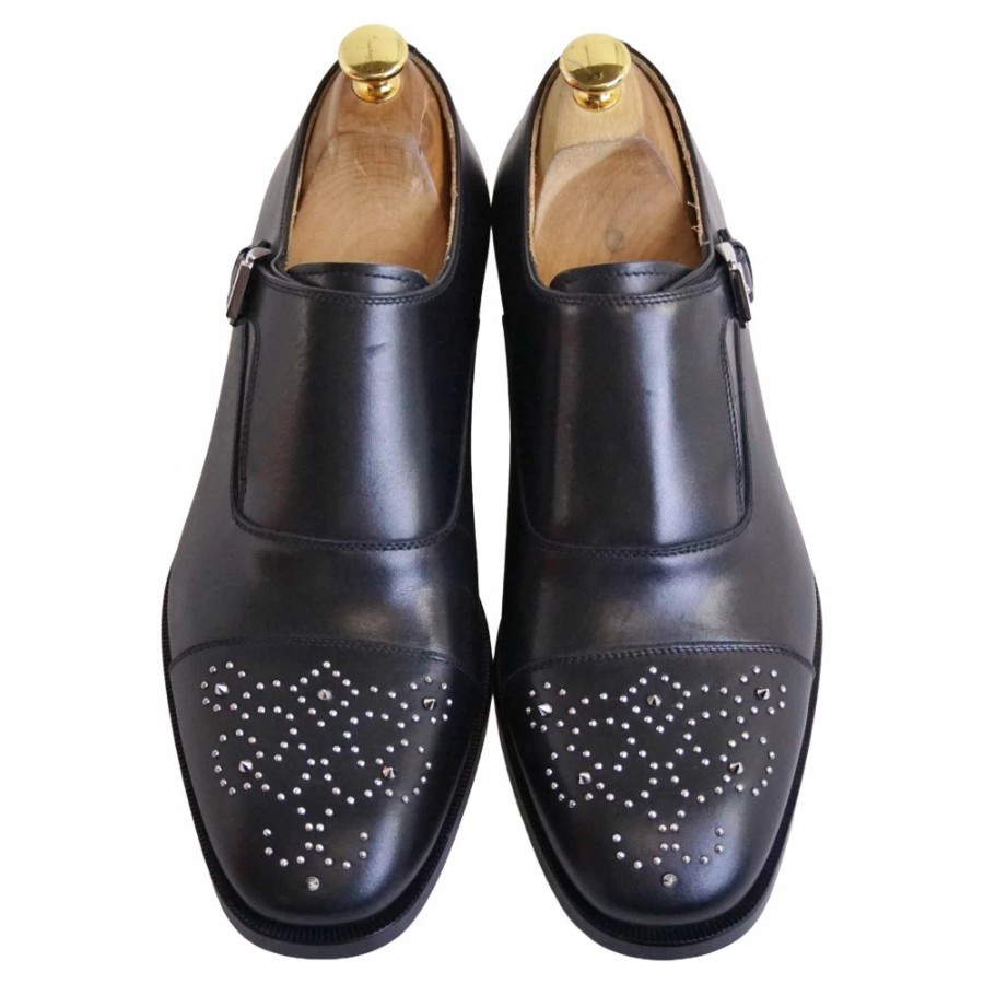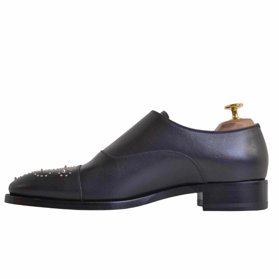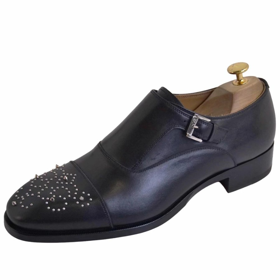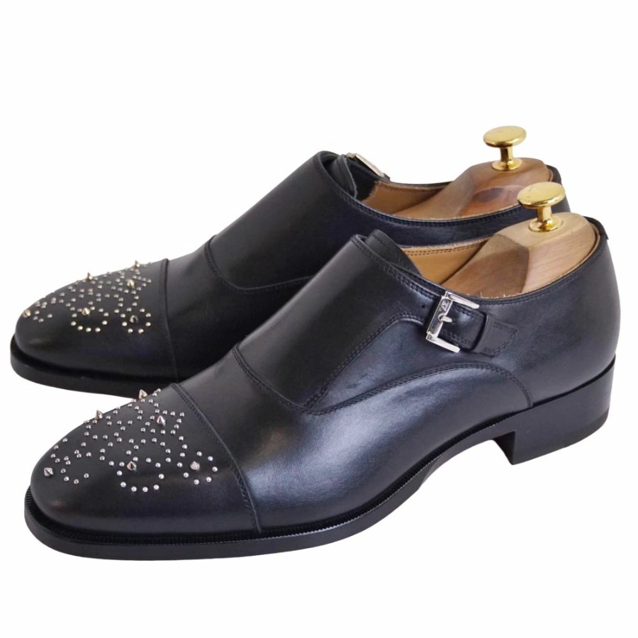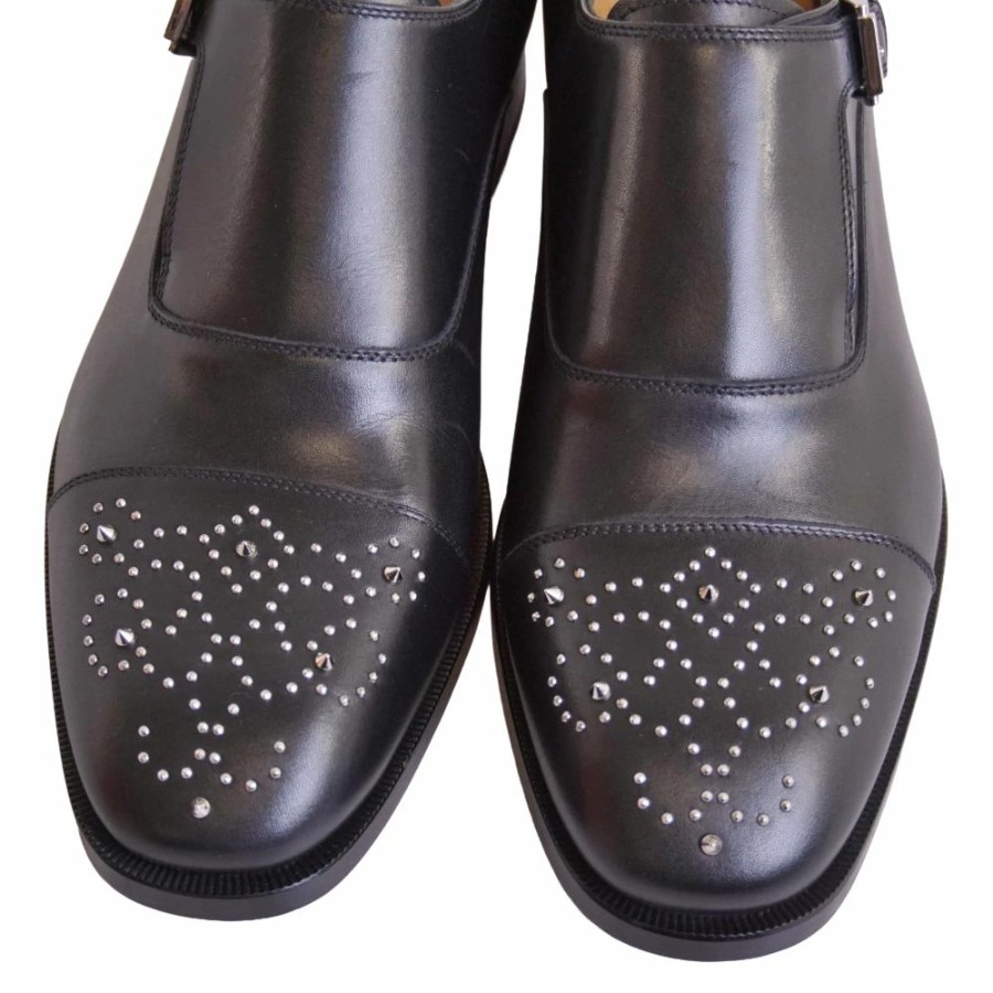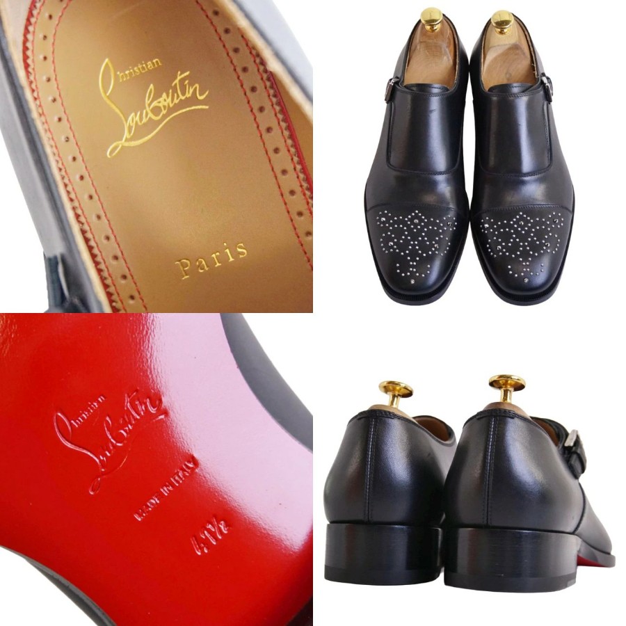 クリスチャンルブタン Christian Louboutin レザー?シューズ モンクストラップ ビジネスシューズ スタッズ 革靴 メンズ イタリア製 ブラック サイズ41.5(26.5cm相当)