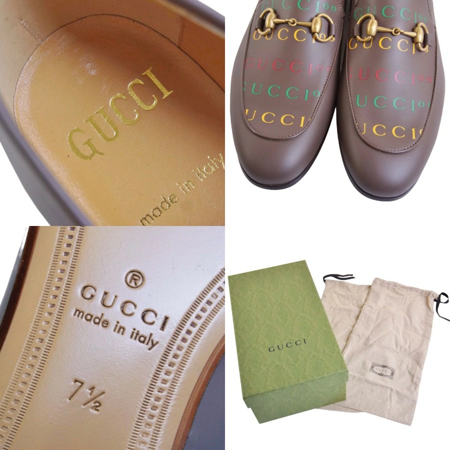 グッチ GUCCI ローファー モカシン 100周年記念モデル ホースビット ロゴ レザー シューズ メンズ イタリア製 ブラウン サイズ7.5(26.5cm相当)