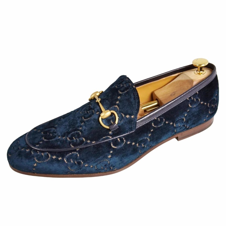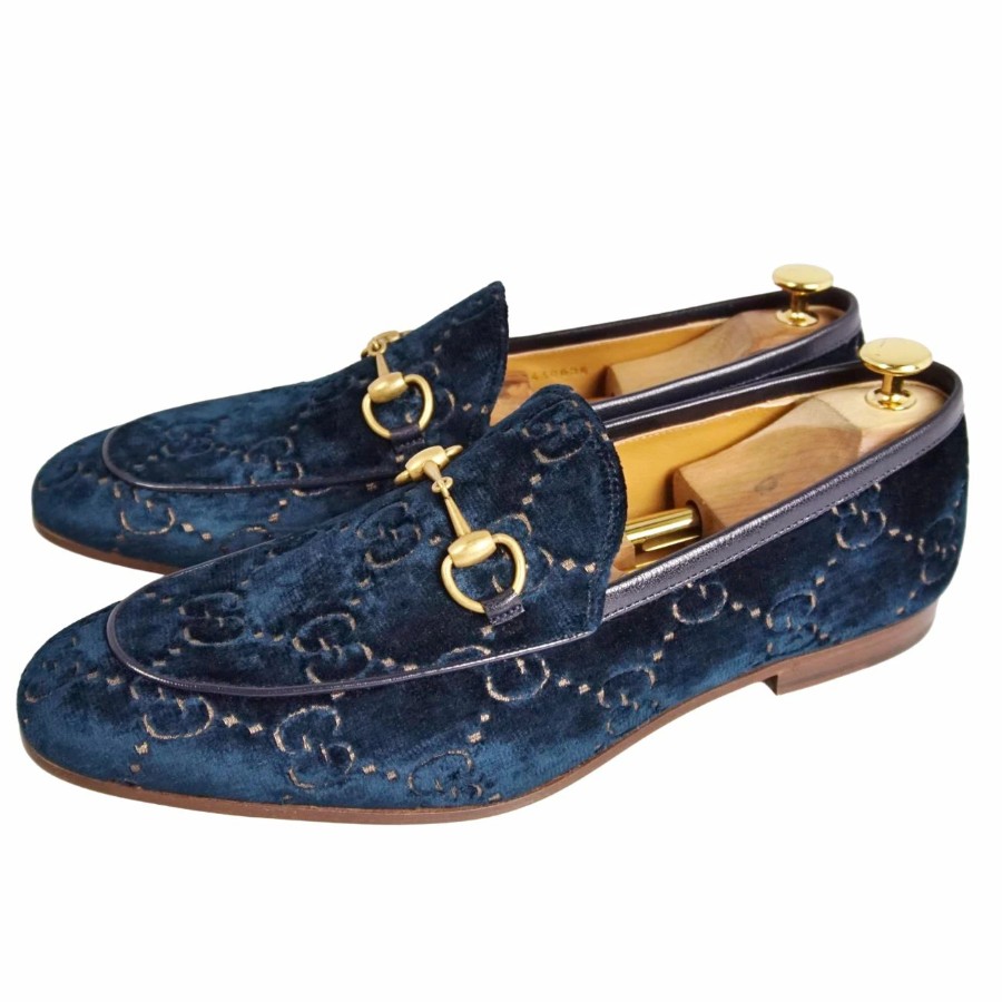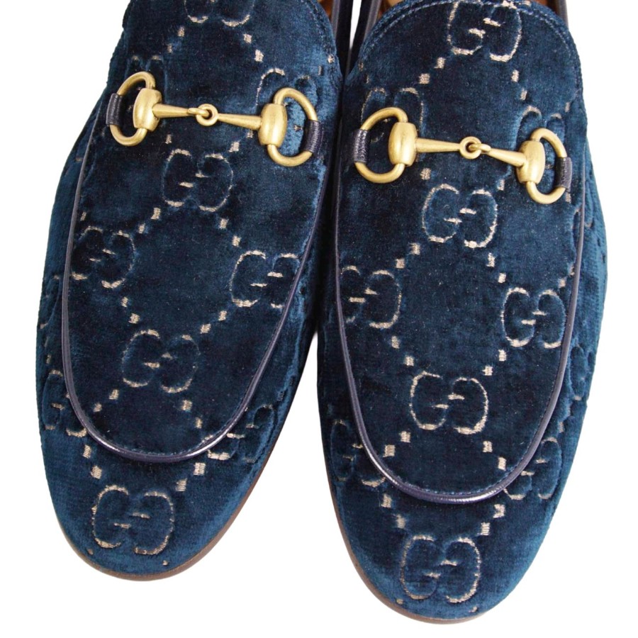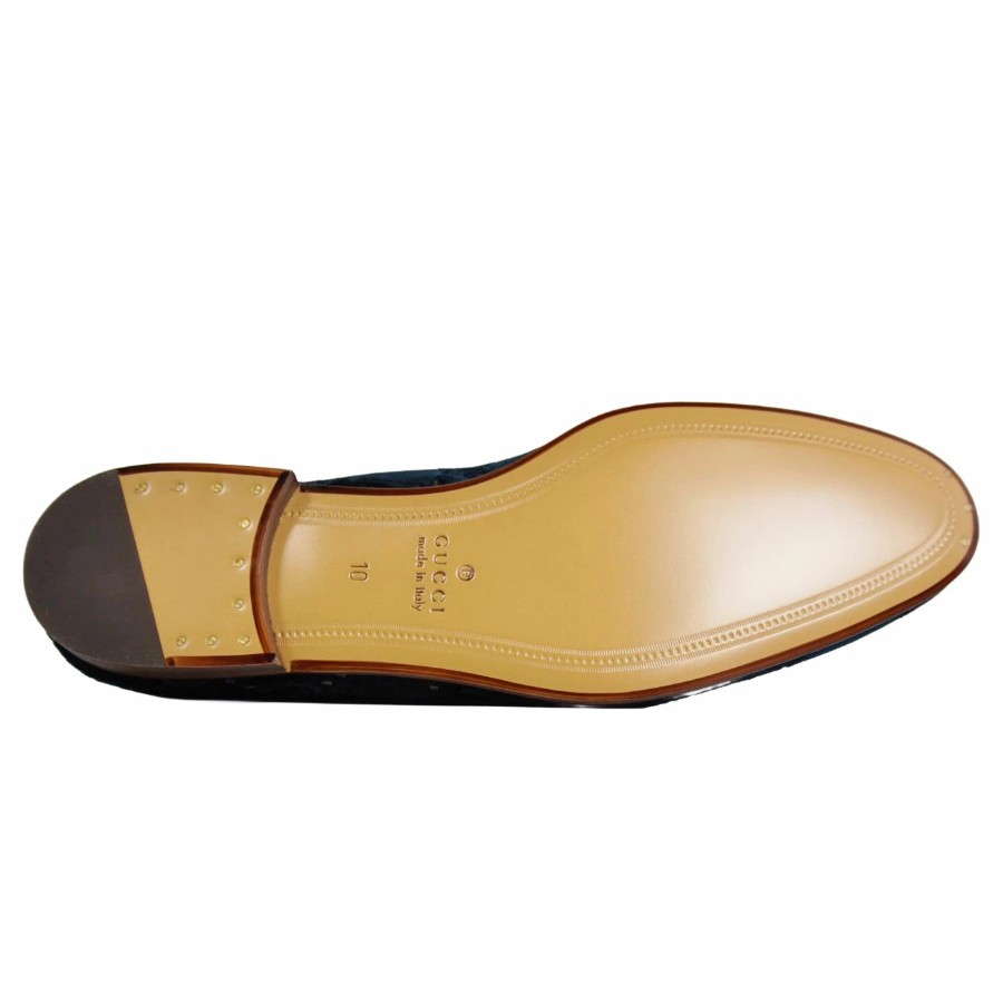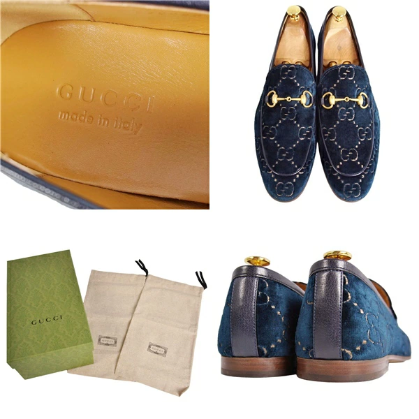 グッチ GUCCI ローファー ヨルダーン モカシン ホースビット ベロア GG柄 シューズ 靴 メンズ イタリア製 ブルー サイズ10(29cm相当)